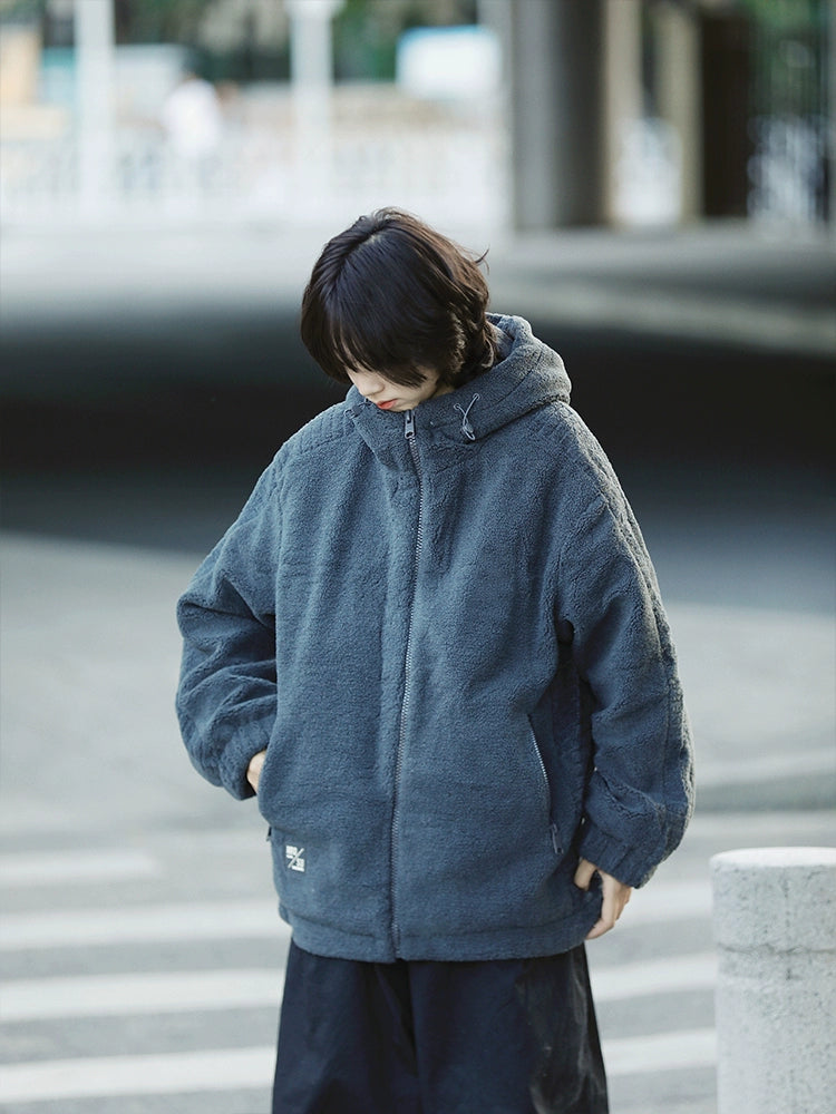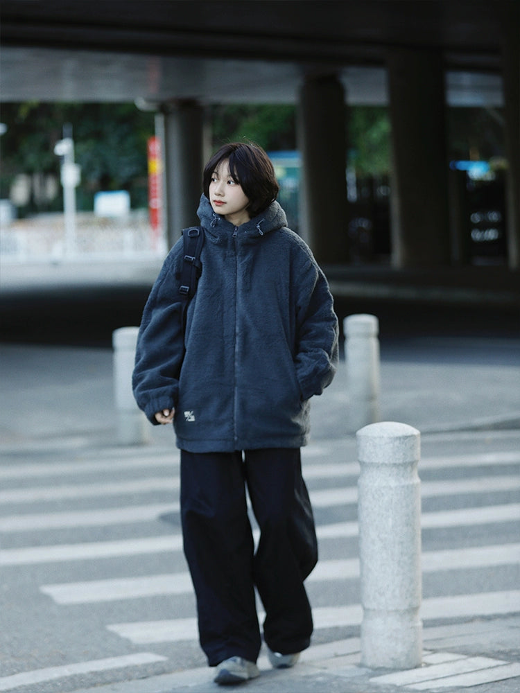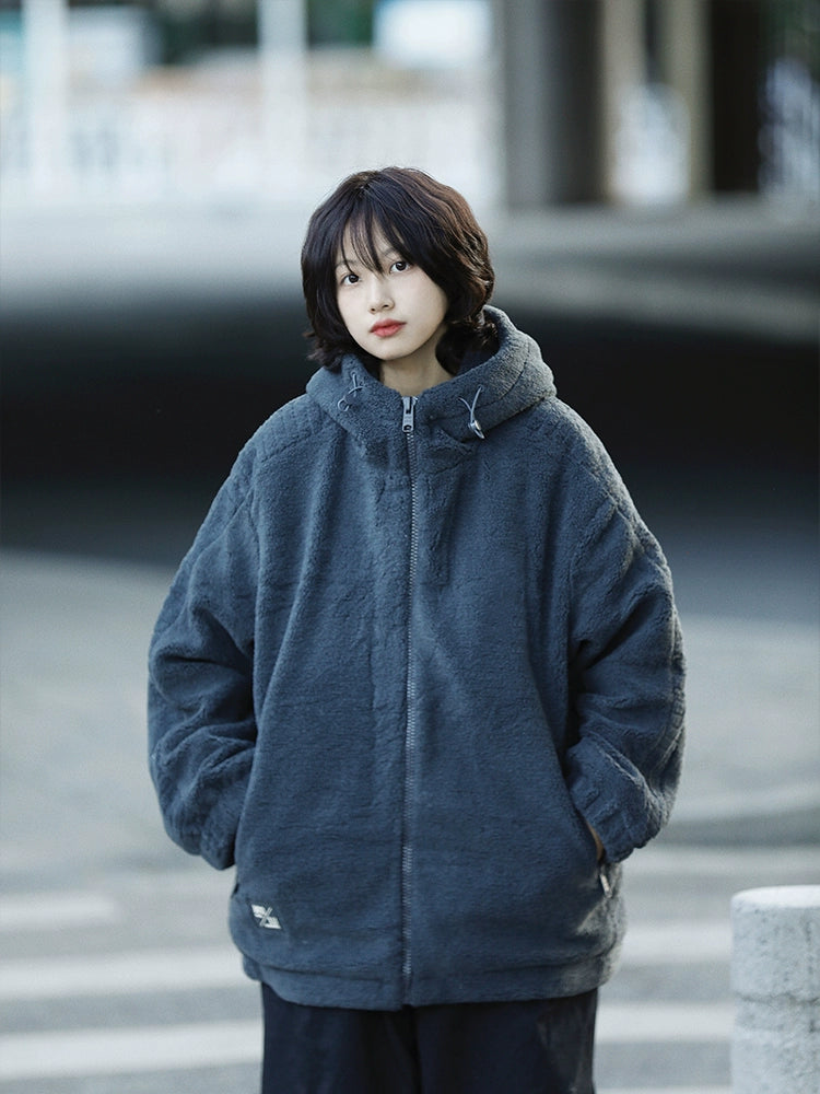 高品質90%白鴨ダウン×内側ボア仕様で、防寒力が非常に高い冬向けアウター。外側はふわっと柔らかな羊羔毛デザインで、着るだけで季節感のあるゆるい雰囲気を演出。撥水加工で普段使いしやすく、ユニセックスで着回せる万能アウター。