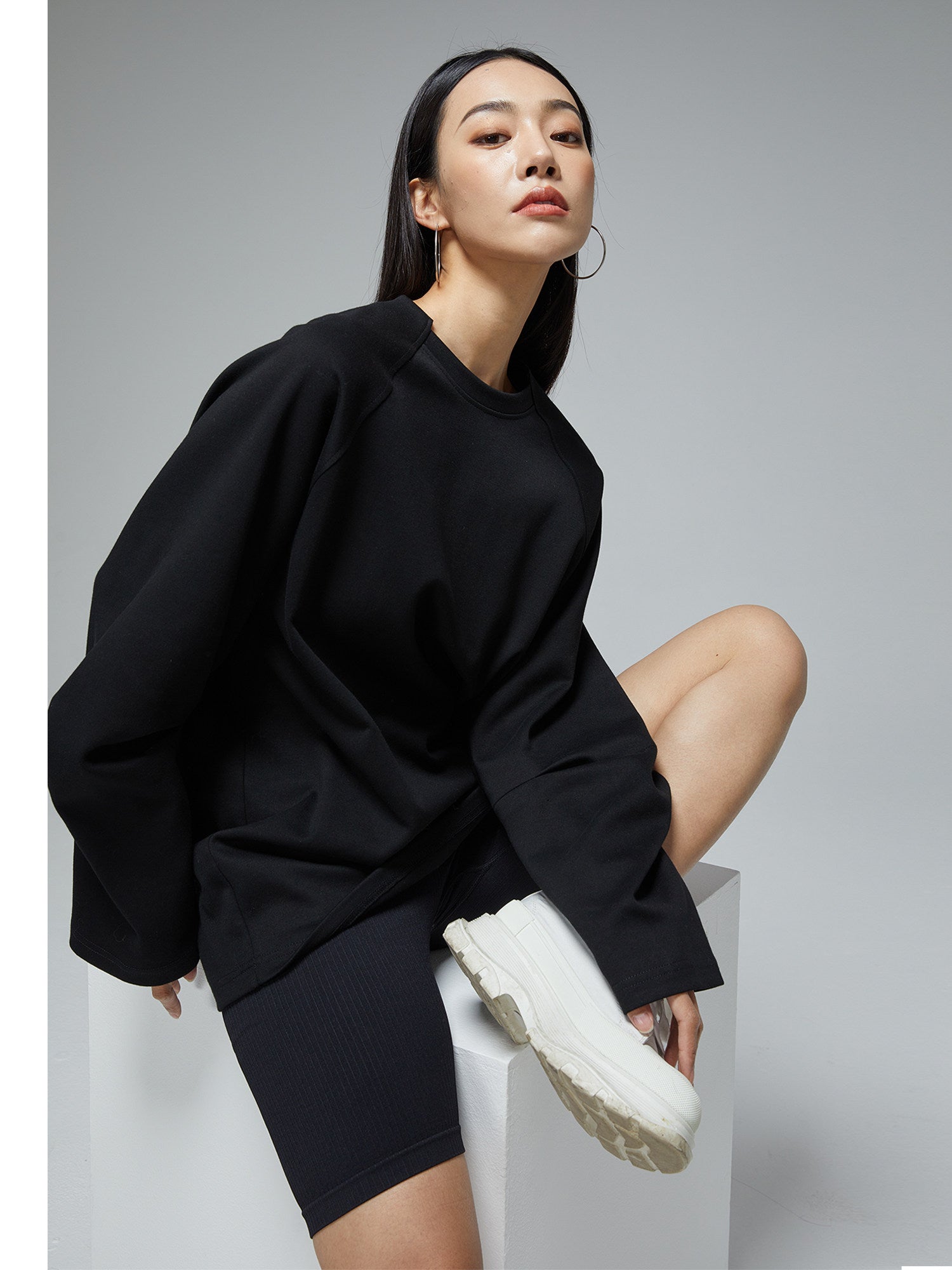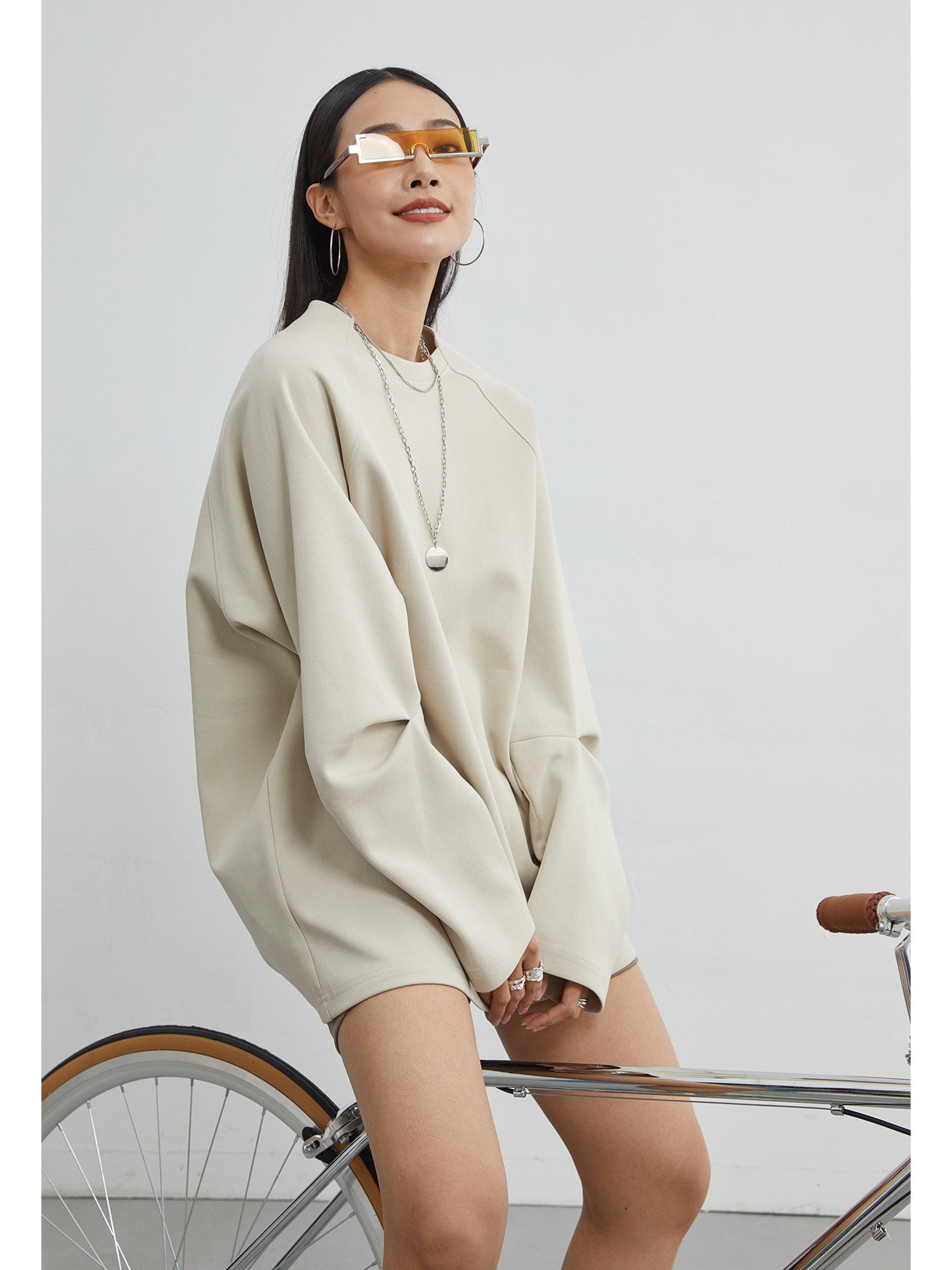 羊角スリーブデザイン 長袖ゆるTシャツ(AVN022)