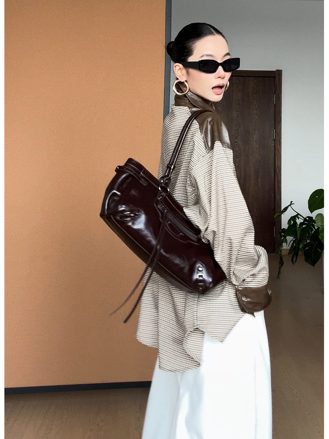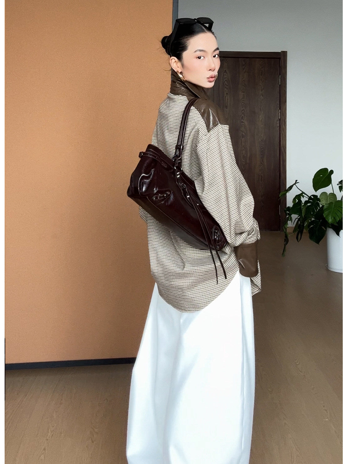 【カラー】ブラウン系千鳥格×ダークブラウン。