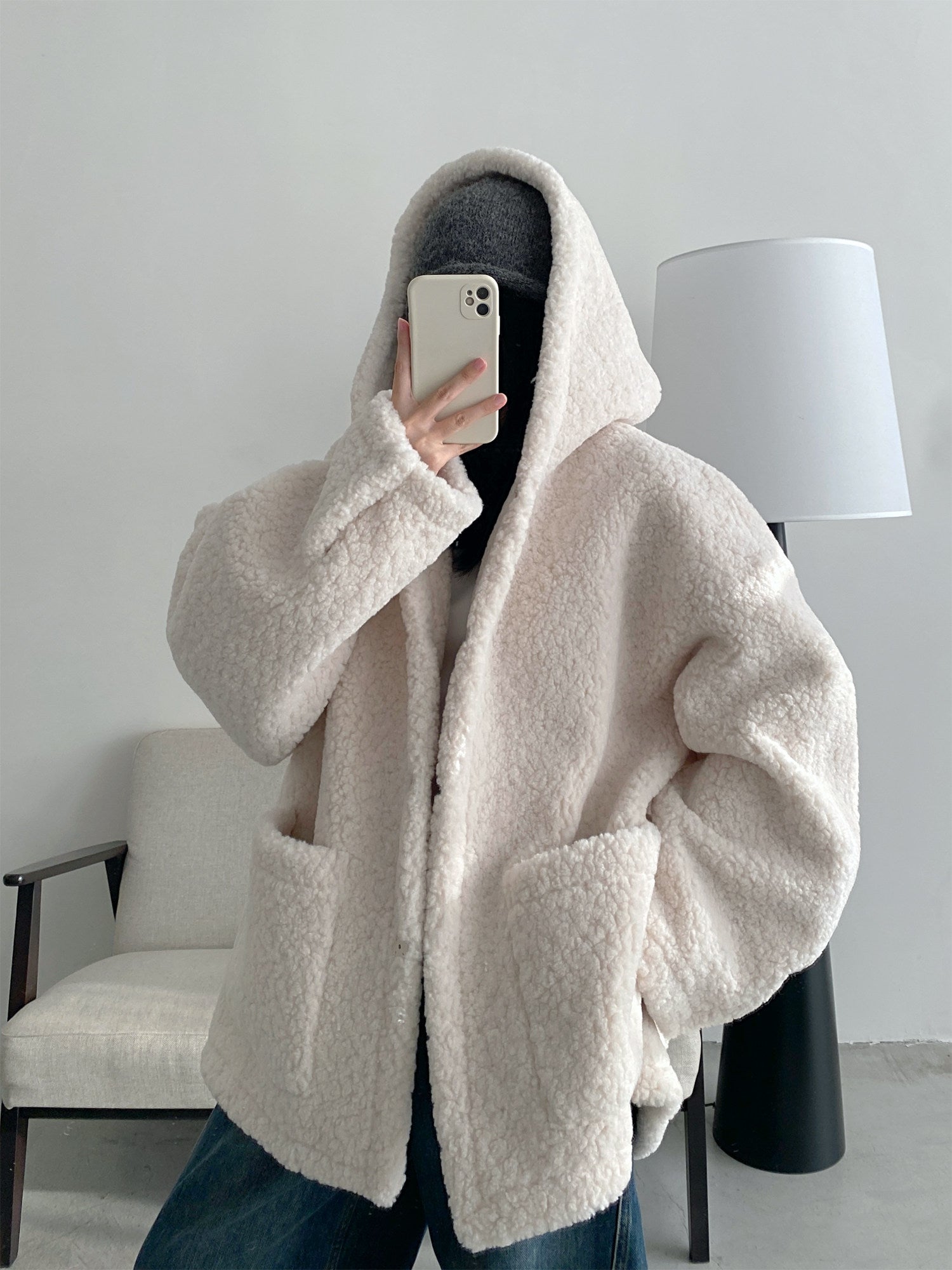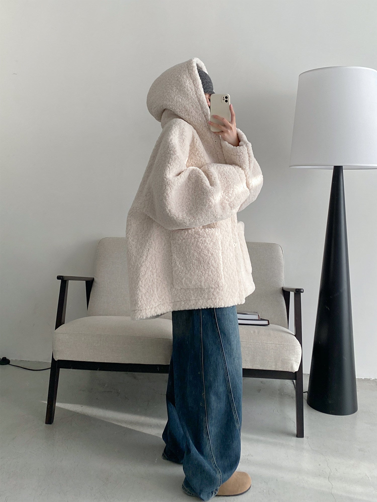 環境配慮型エコファー素材を使用した、秋冬向けの加厚フード付き皮毛一体コート。ふんわりとした毛足と立体感のあるシルエットで、防寒性とデザイン性を両立。ヒップまで覆う安心感のある丈感で、デニムやワイドパンツとも相性が良く、デイリーから外出まで幅広く活躍する一着。