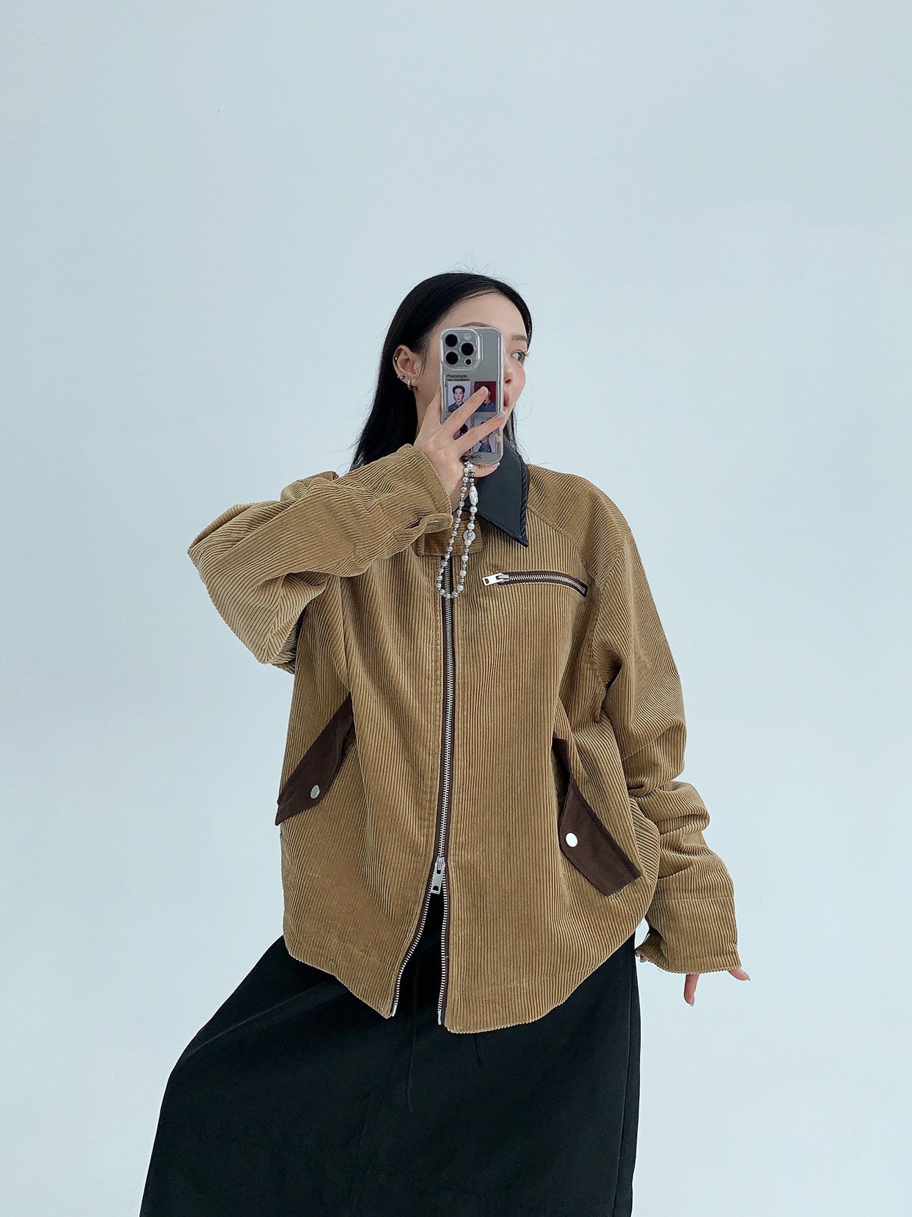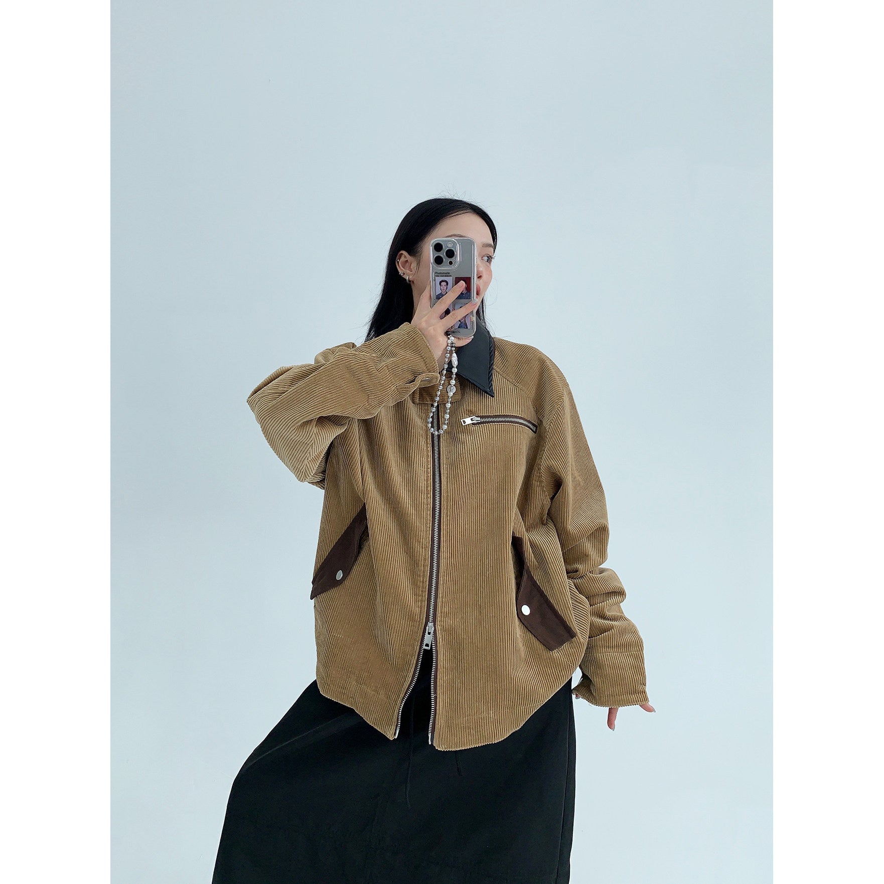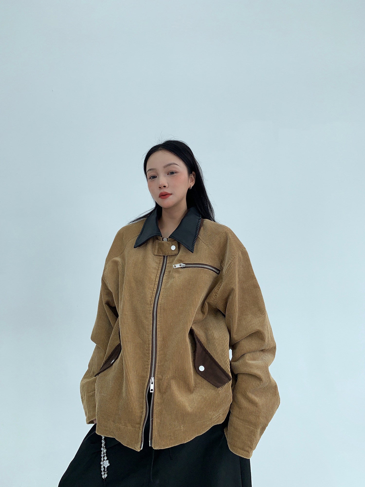 バーン風デザインを取り入れた、短丈タイプのコーデュロイジャケット。程よい厚みの灯芯绒素材で、秋冬に活躍。ワイドシルエットと短丈バランスで、ユニセックス対応。