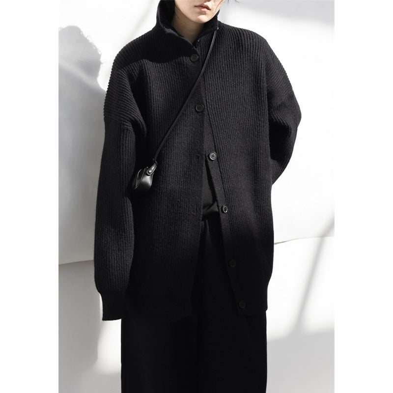 立ち襟ニットカーディガン|ミニマルモードな厚手デザイン(CZ008)