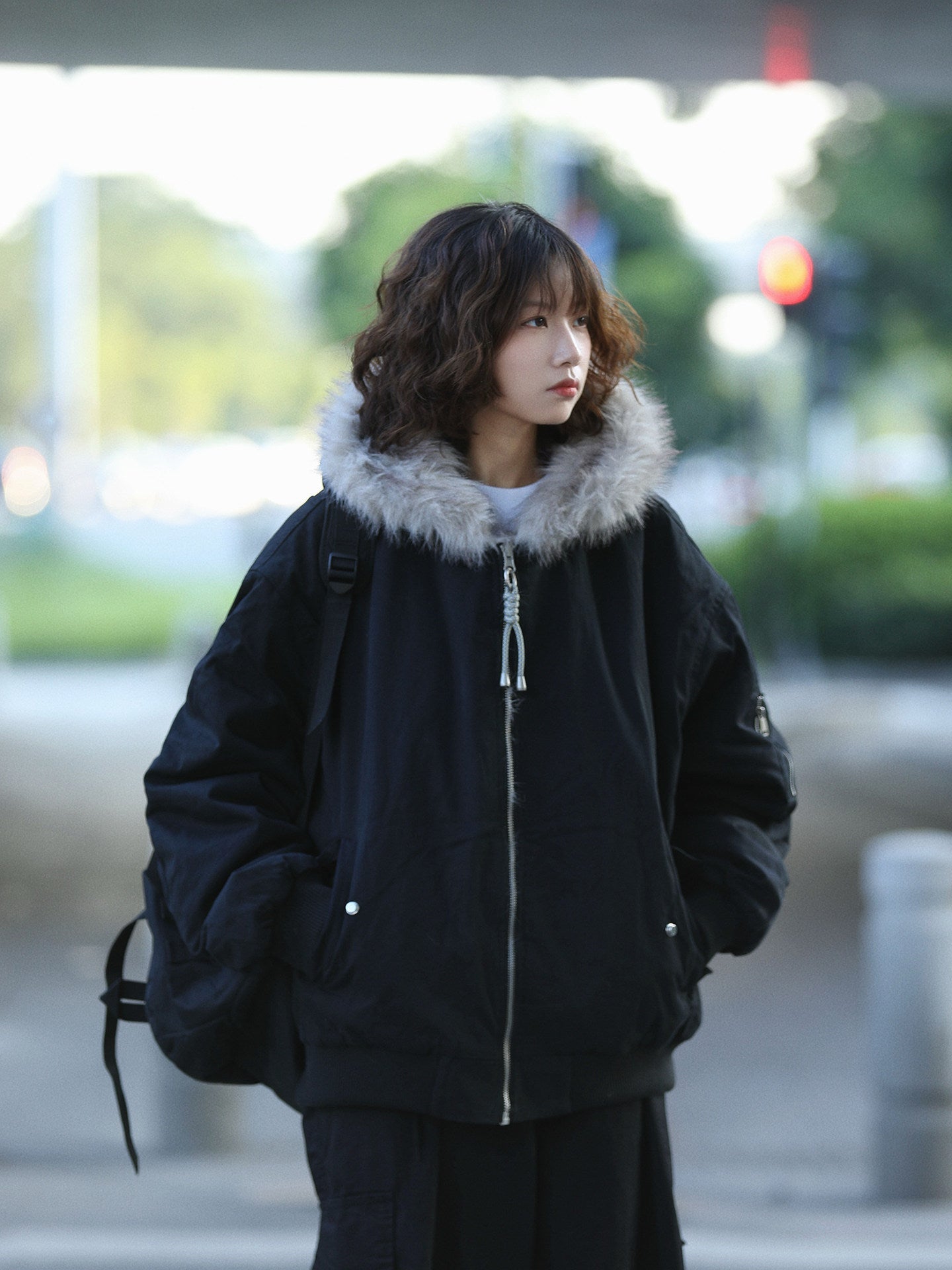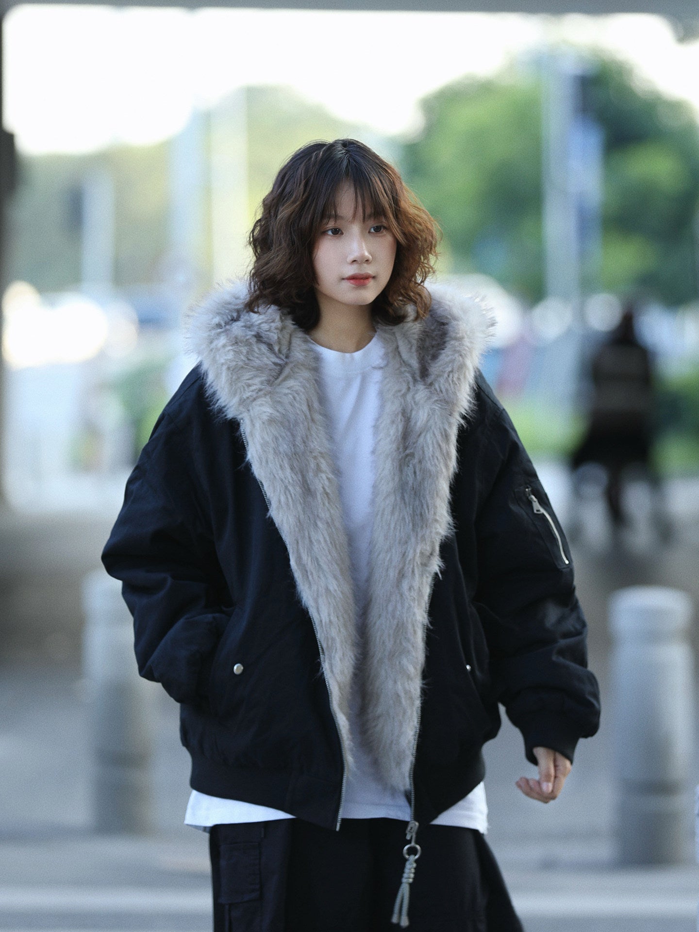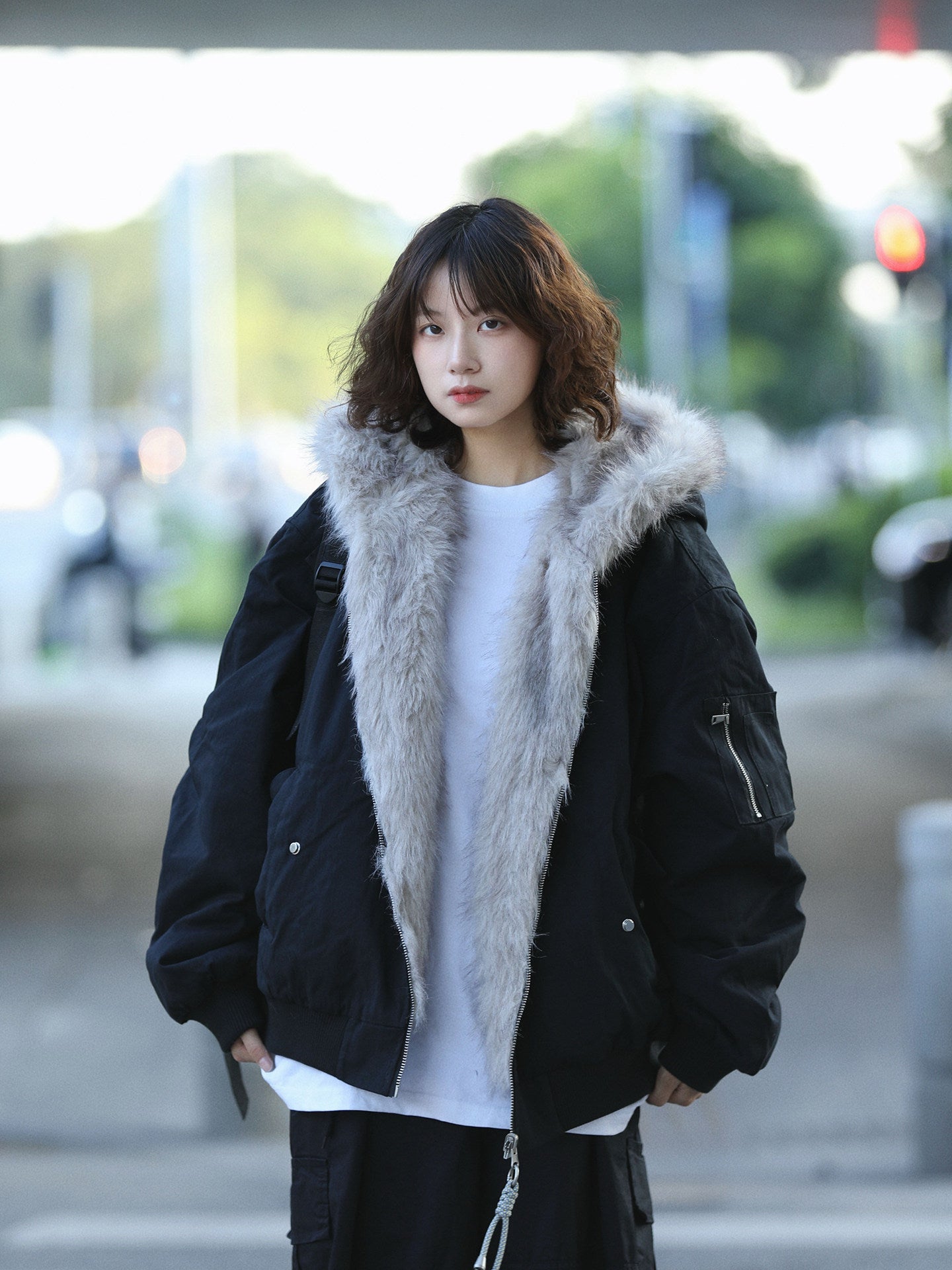 真冬でも安心の高保温アウター。両面着用できる2WAY仕様で、表はミリタリー調のマット質感、裏面はふわふわボアで抜群の暖かさ。ボリュームフードとゆったりシルエットでトレンド感も確保。