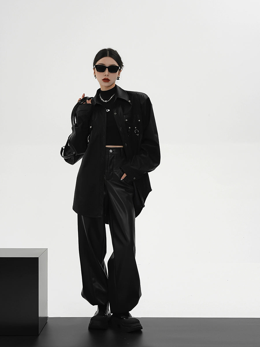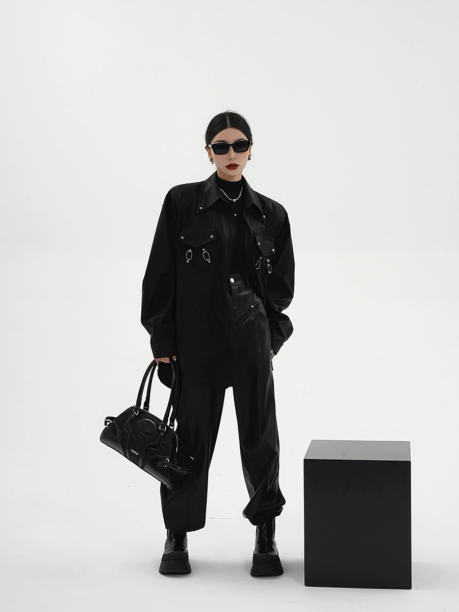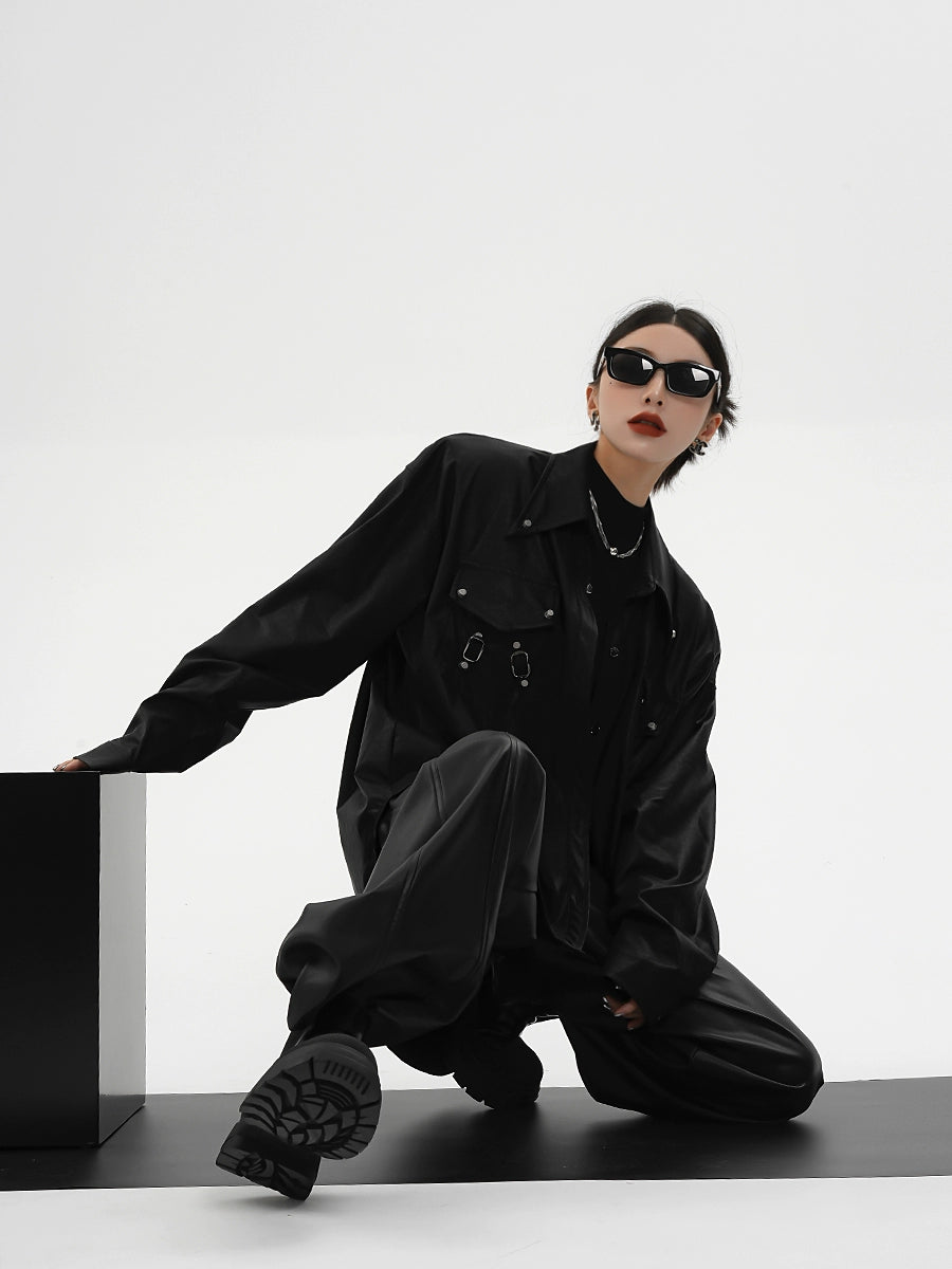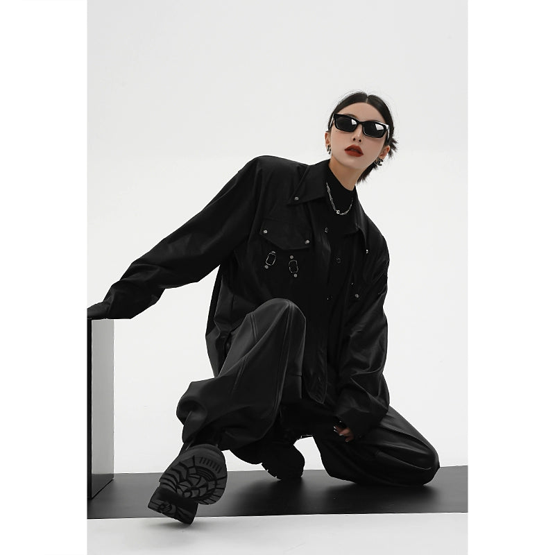 レザーシャツジャケット|オーバーサイズ デザインシャツ(CZ198)