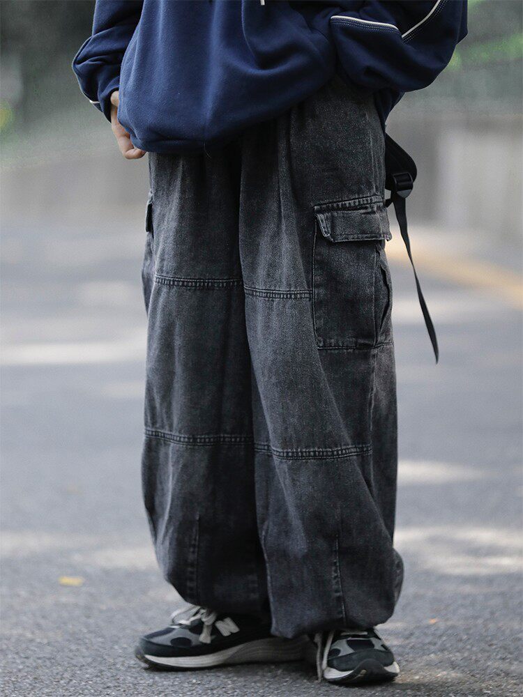 深みのあるヴィンテージ加工と無骨な極太シルエットが特徴。ワイドラインが体型カバーにも優れ、スウェット・パーカー・アウターと相性抜群。