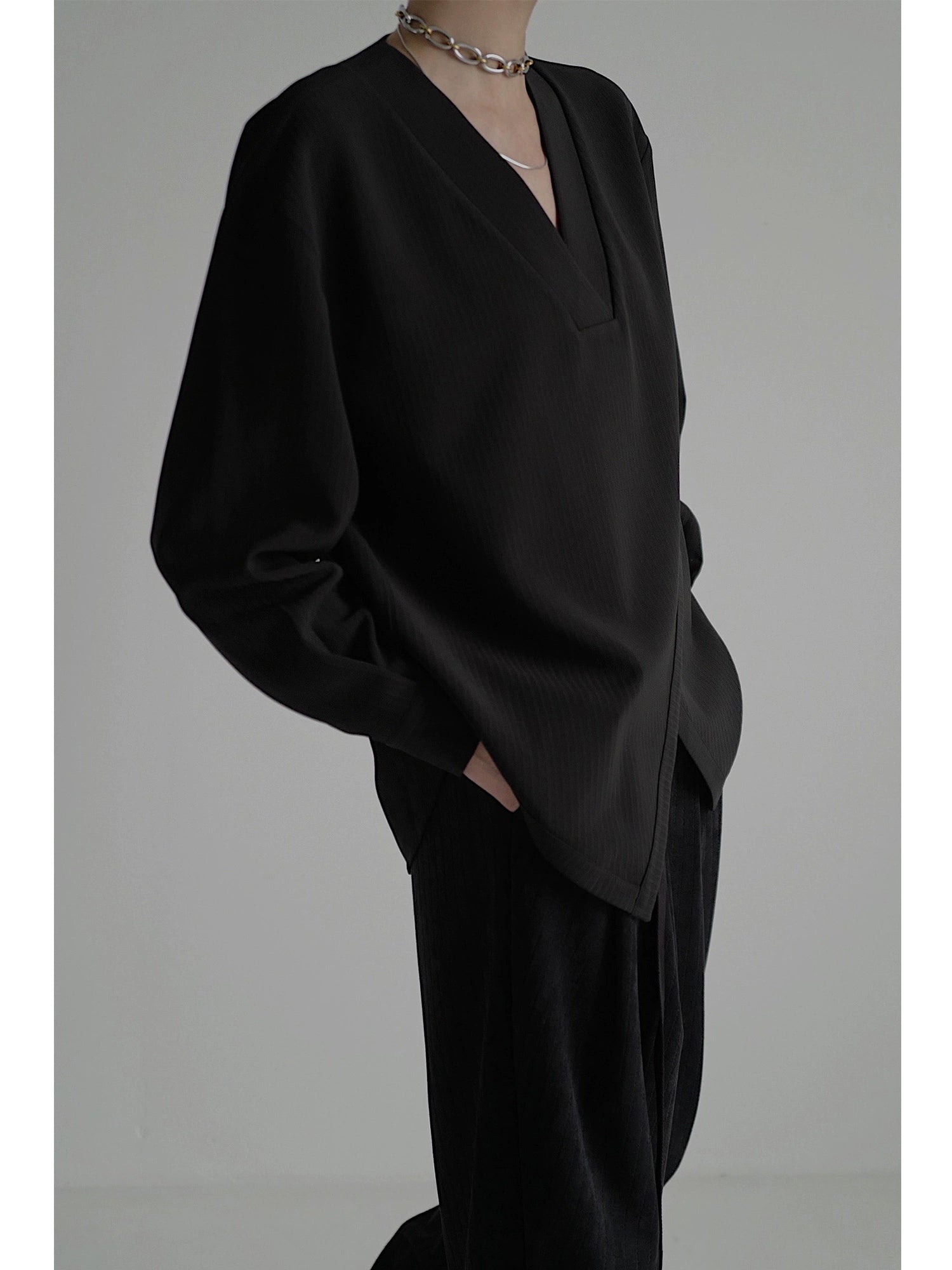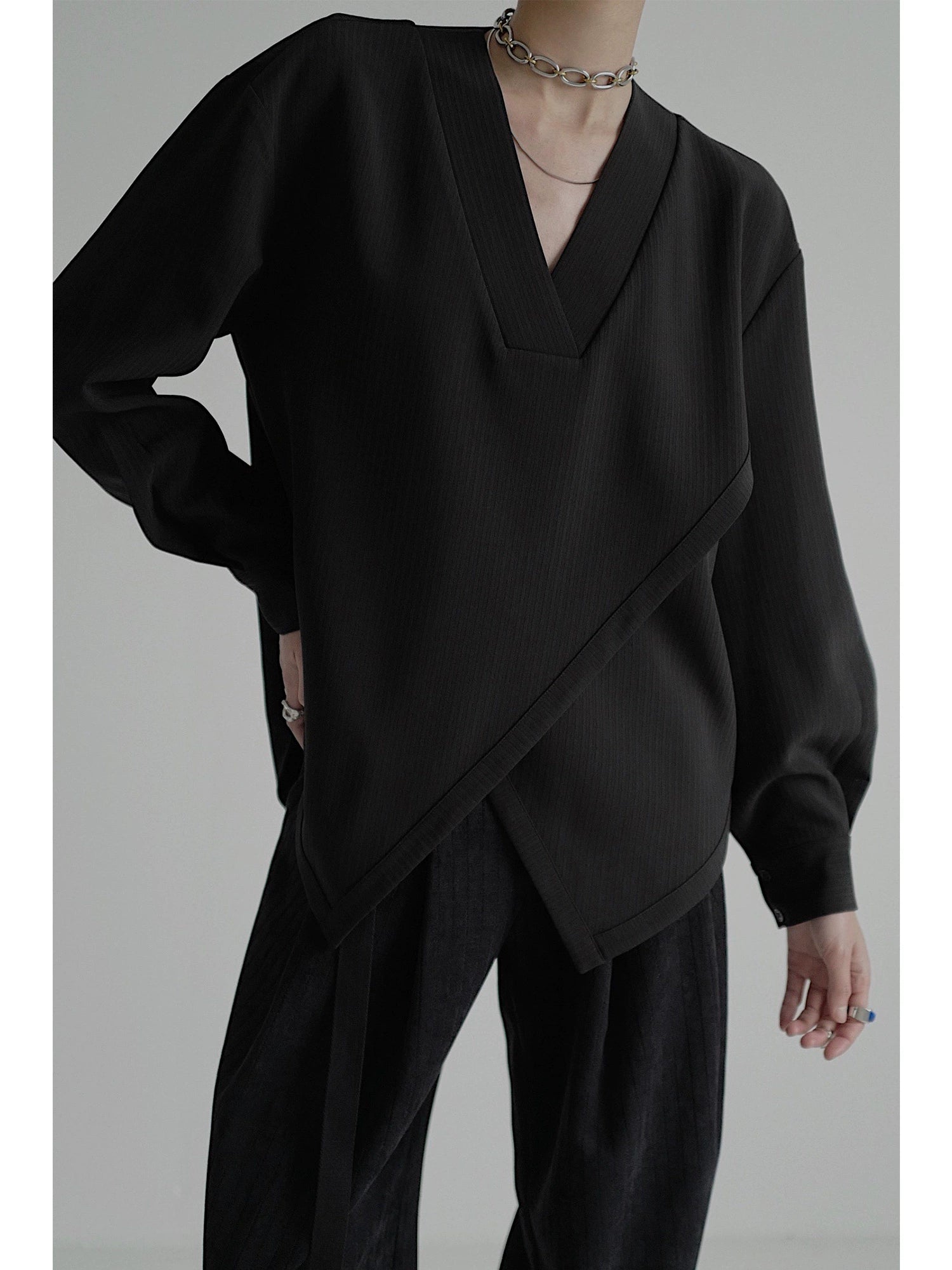 デザインブラウス|Vネック 長袖 モードカジュアル トップス(CZ321)