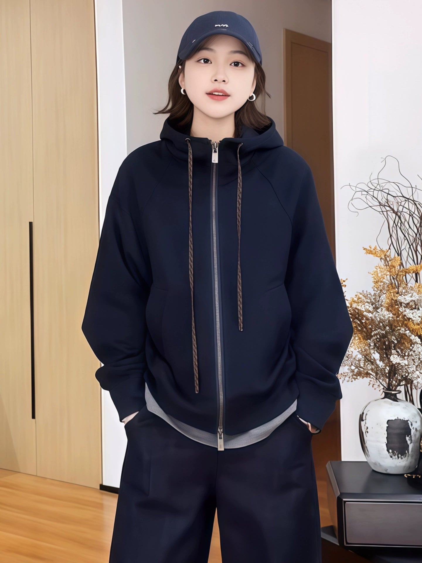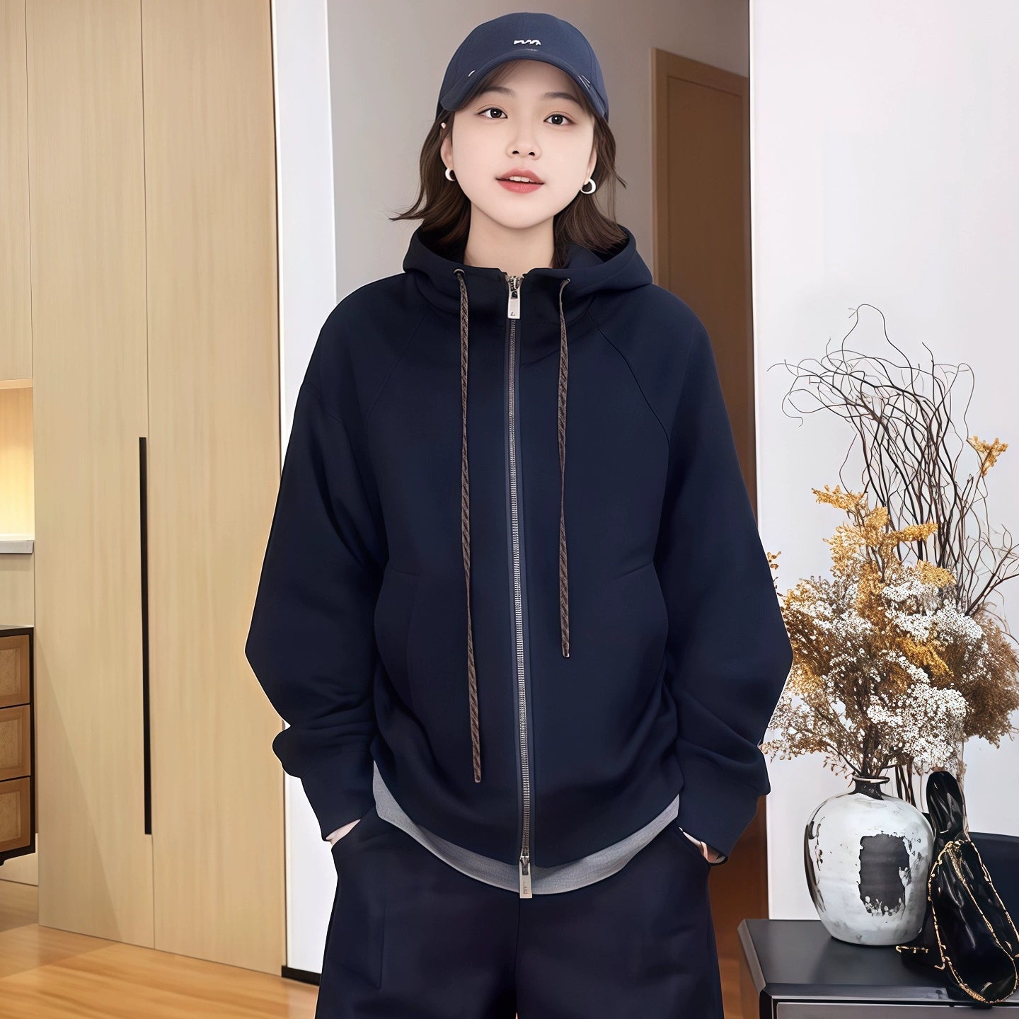 シンプルながらスタイリッシュな印象のスポーティーフーディ。しっかりした厚手スウェット素材を使用し、秋口から冬前まで着用可能。ゆったりとしたラグランスリーブと前開きジップ仕様で、着脱も簡単。大きめサイズ展開で体型を選ばず、カジュアルにもアスレジャーにも合わせやすい万能アイテム。
