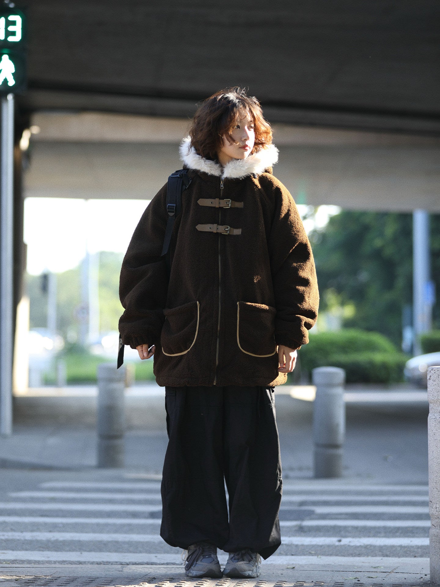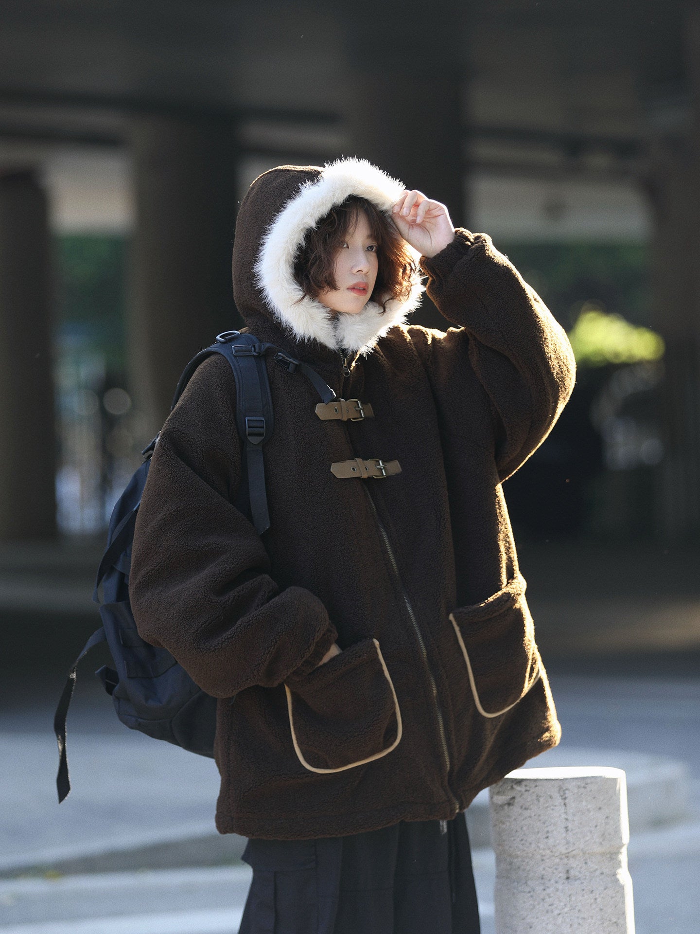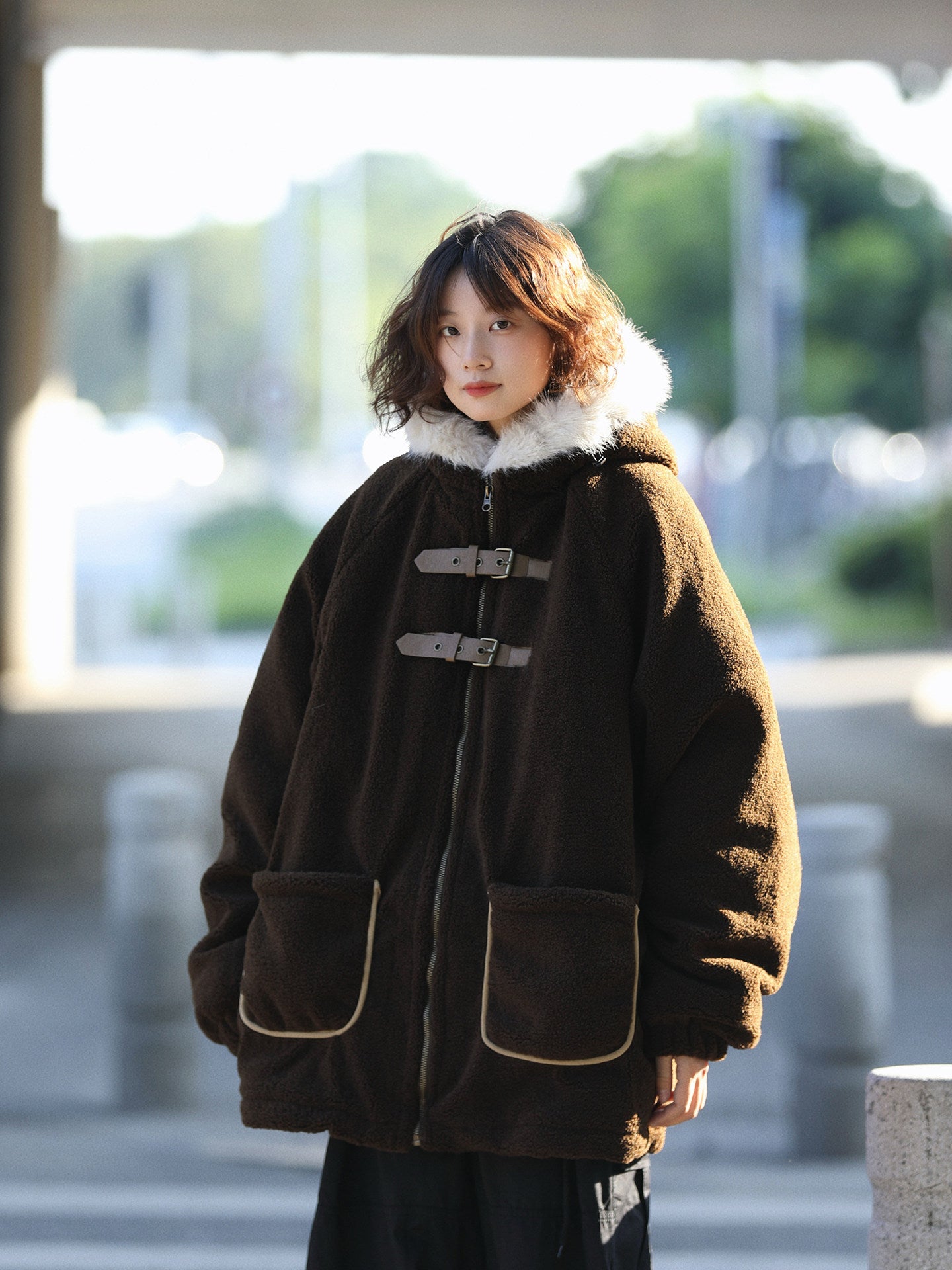 ふっくら柔らかな羊ボアと裏起毛でしっかり暖かい冬アウター。程よいボリューム感で着膨れしにくく、美シルエットをキープ。大きめフードで小顔見え。