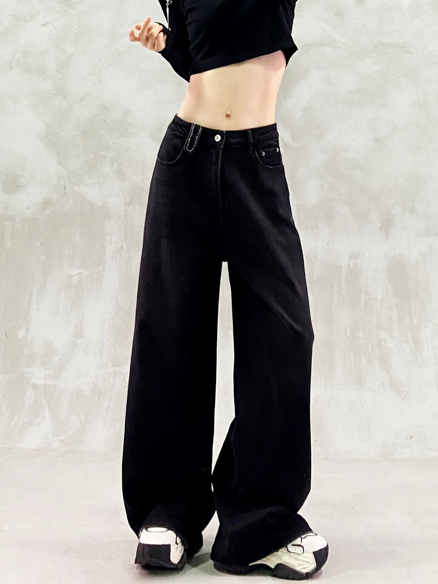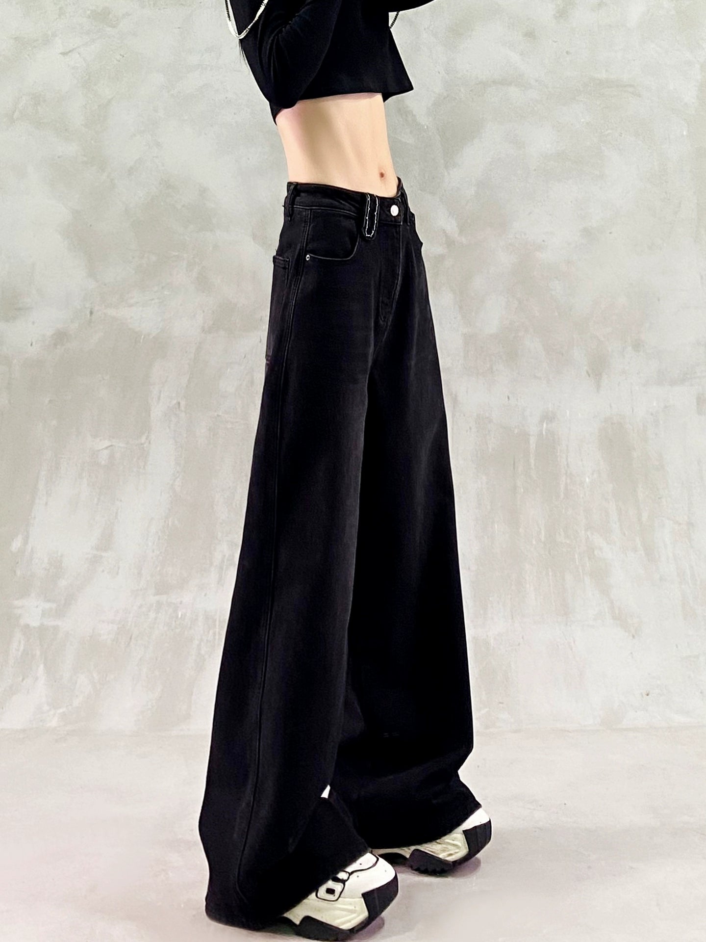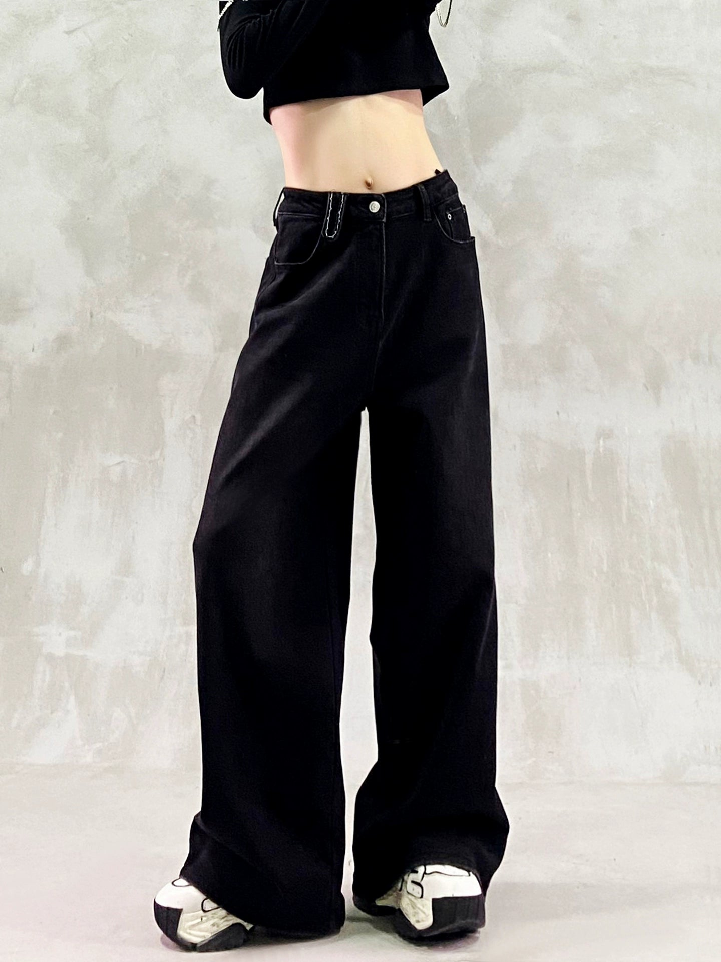 秋冬にぴったりのウォッシュブラックデニム。裏面に薄手の起毛加工が施され、保温性と快適さを兼ね備えたワイドシルエットパンツ。ハイウエスト仕様で脚長効果抜群、腰回りをすっきり見せつつ全体にリラックス感を演出します。シンプルながらもスタイリッシュな印象で、どんなトップスにもマッチ。