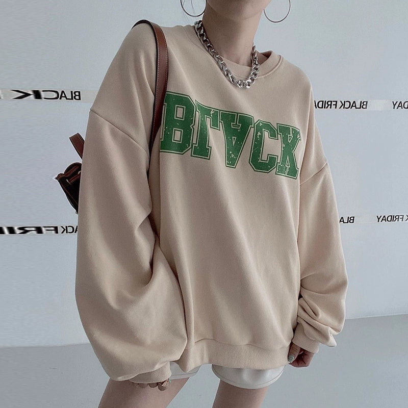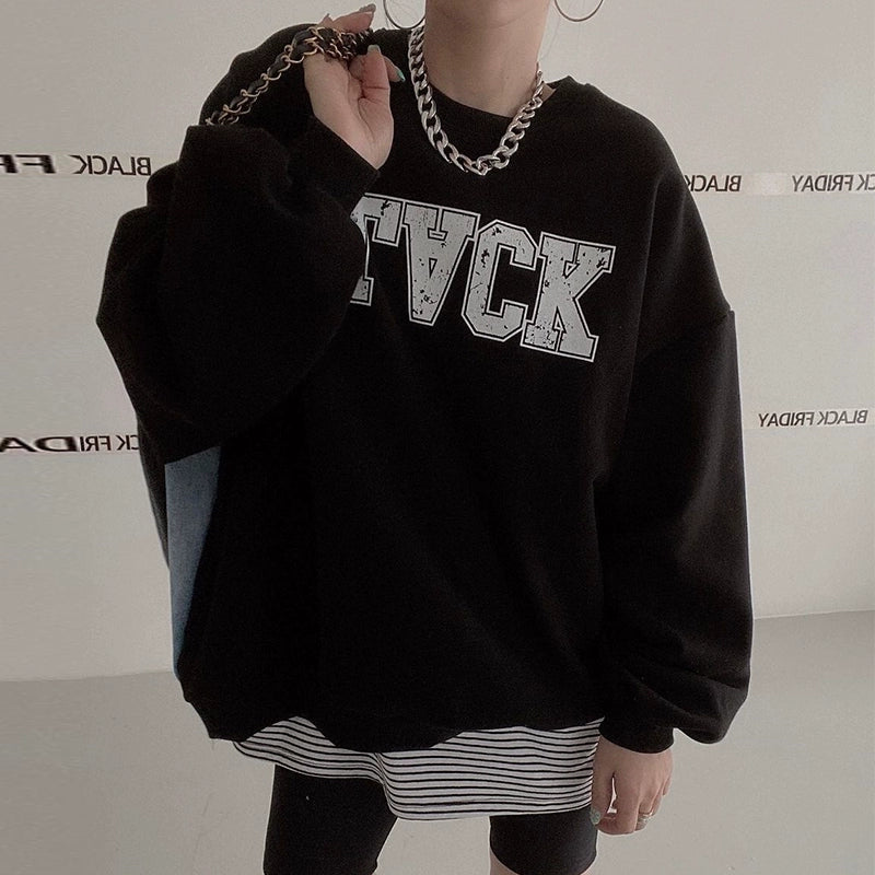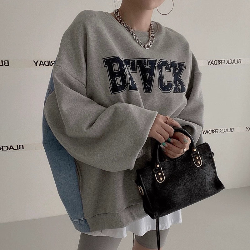 デニム切替ロゴスウェット|オーバーサイズトレーナー(HU071)