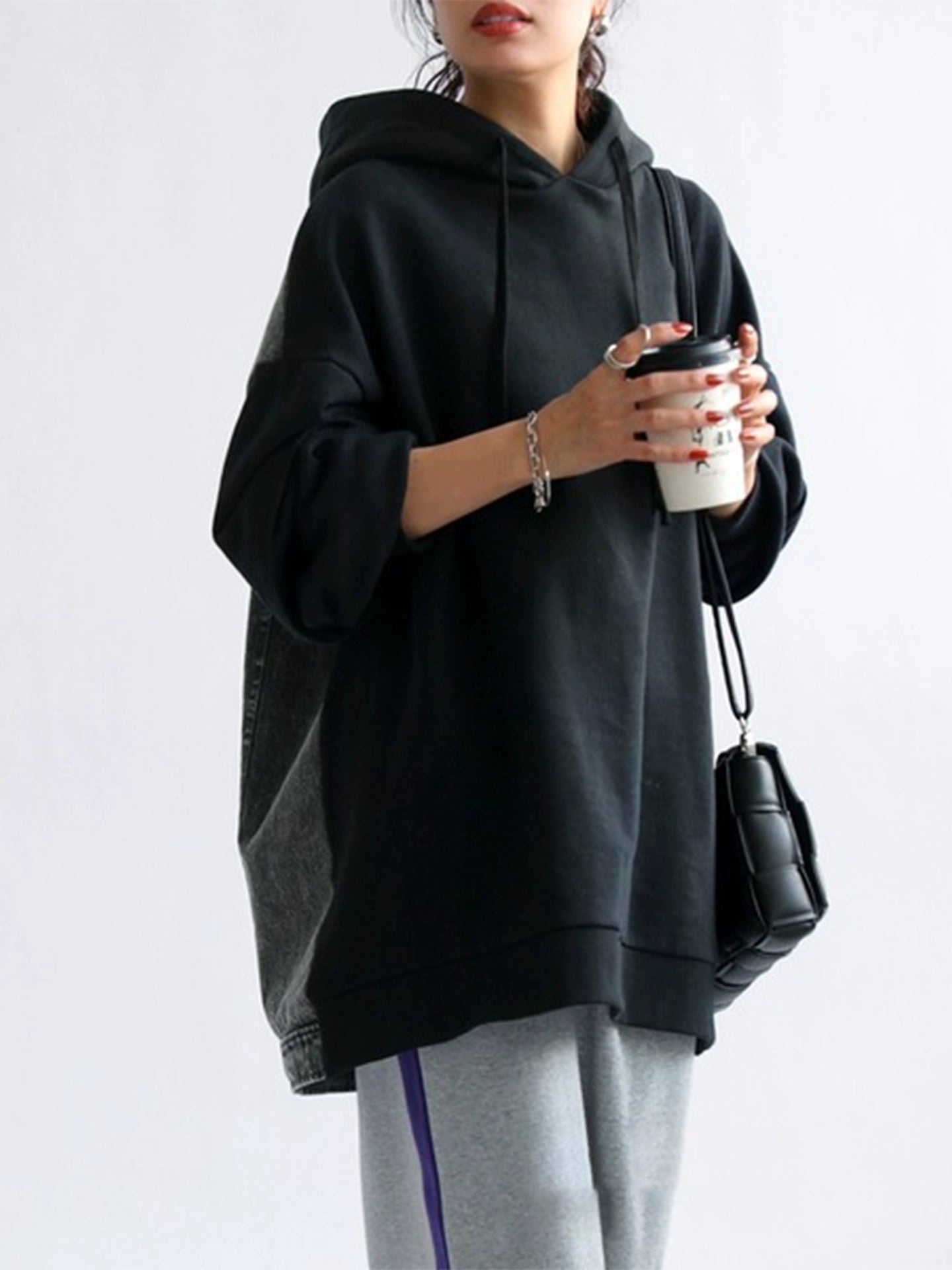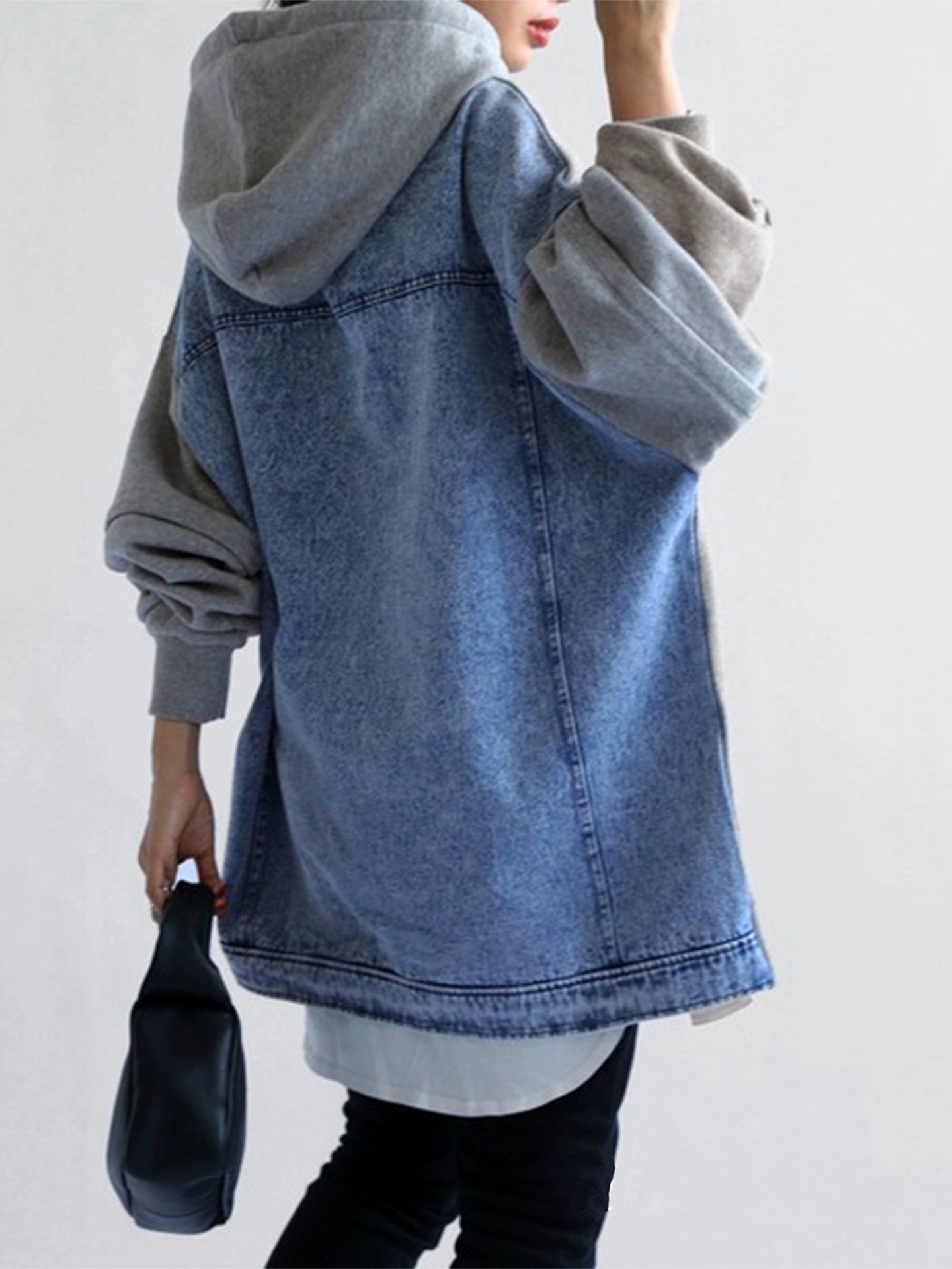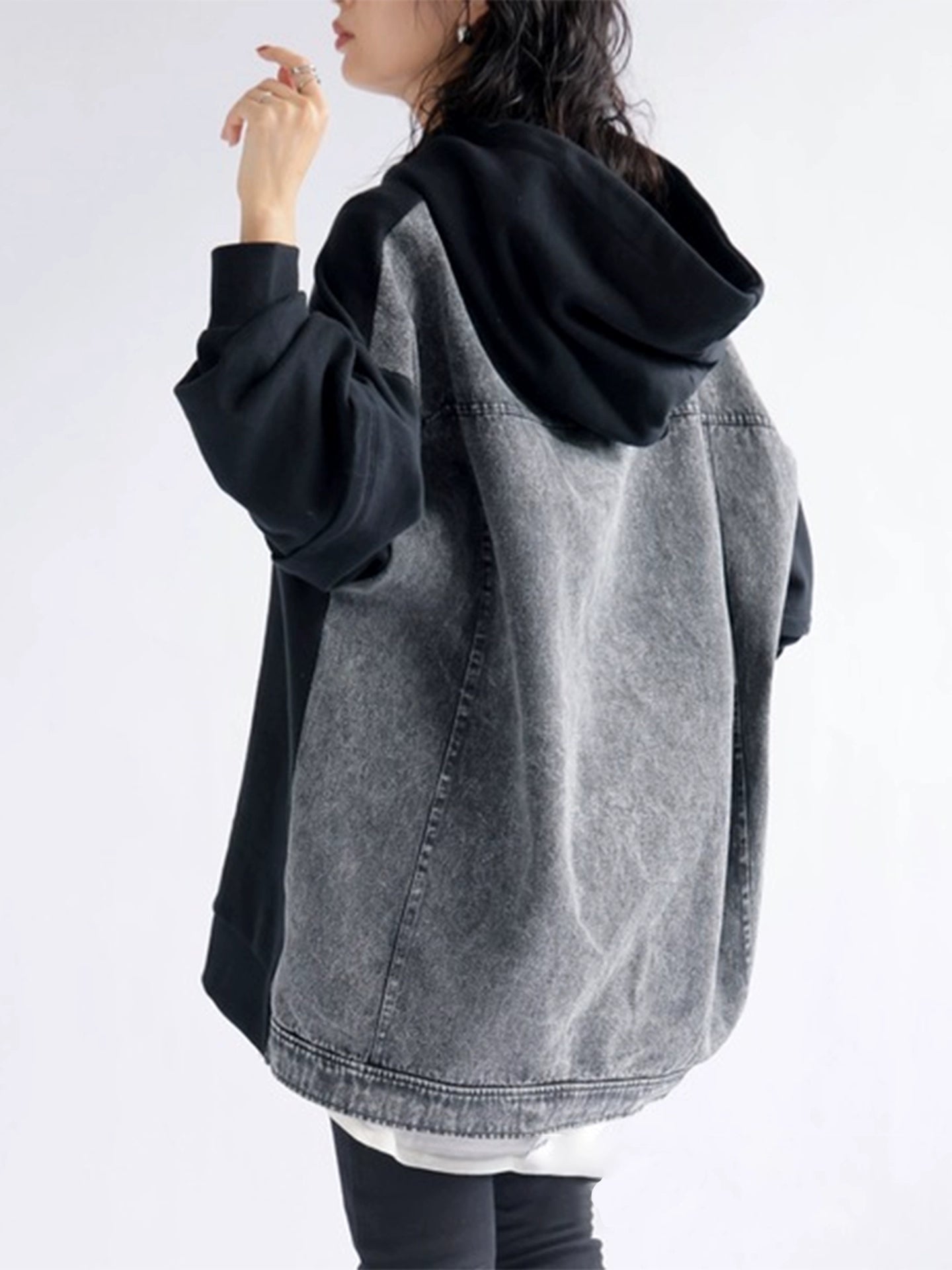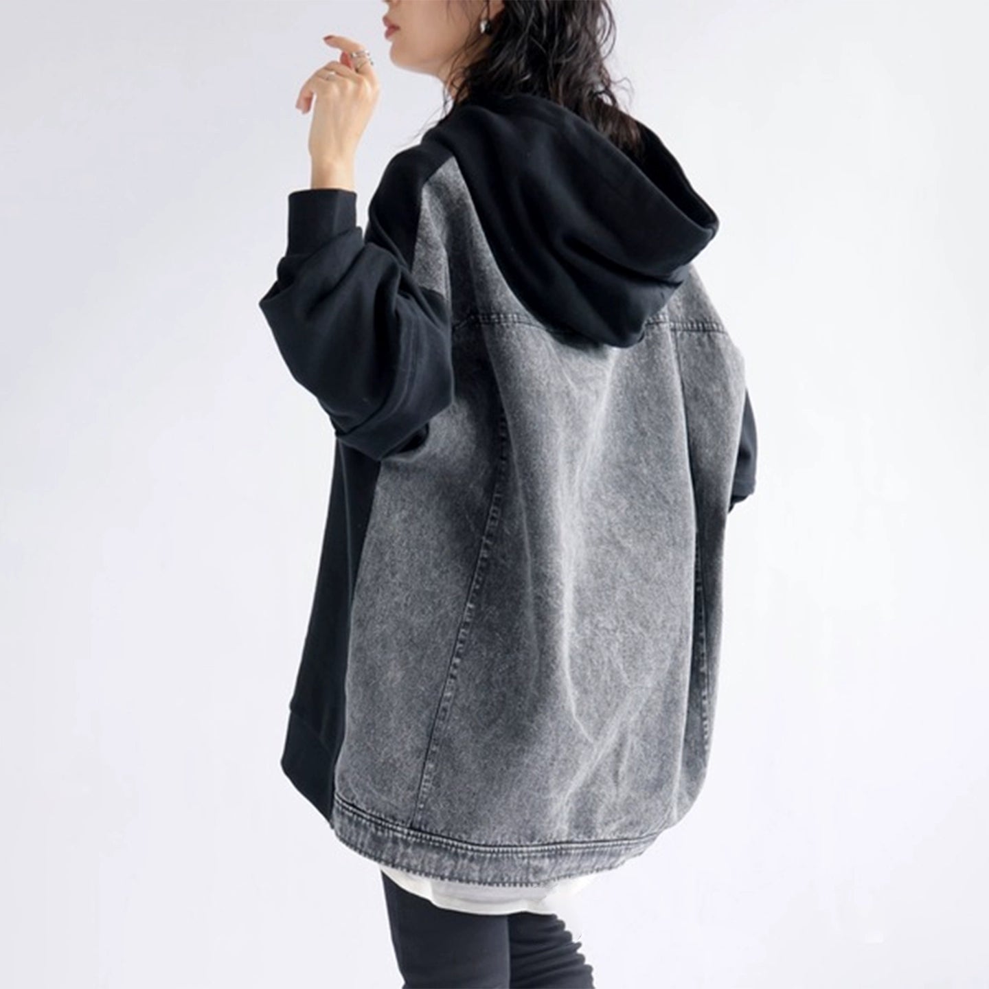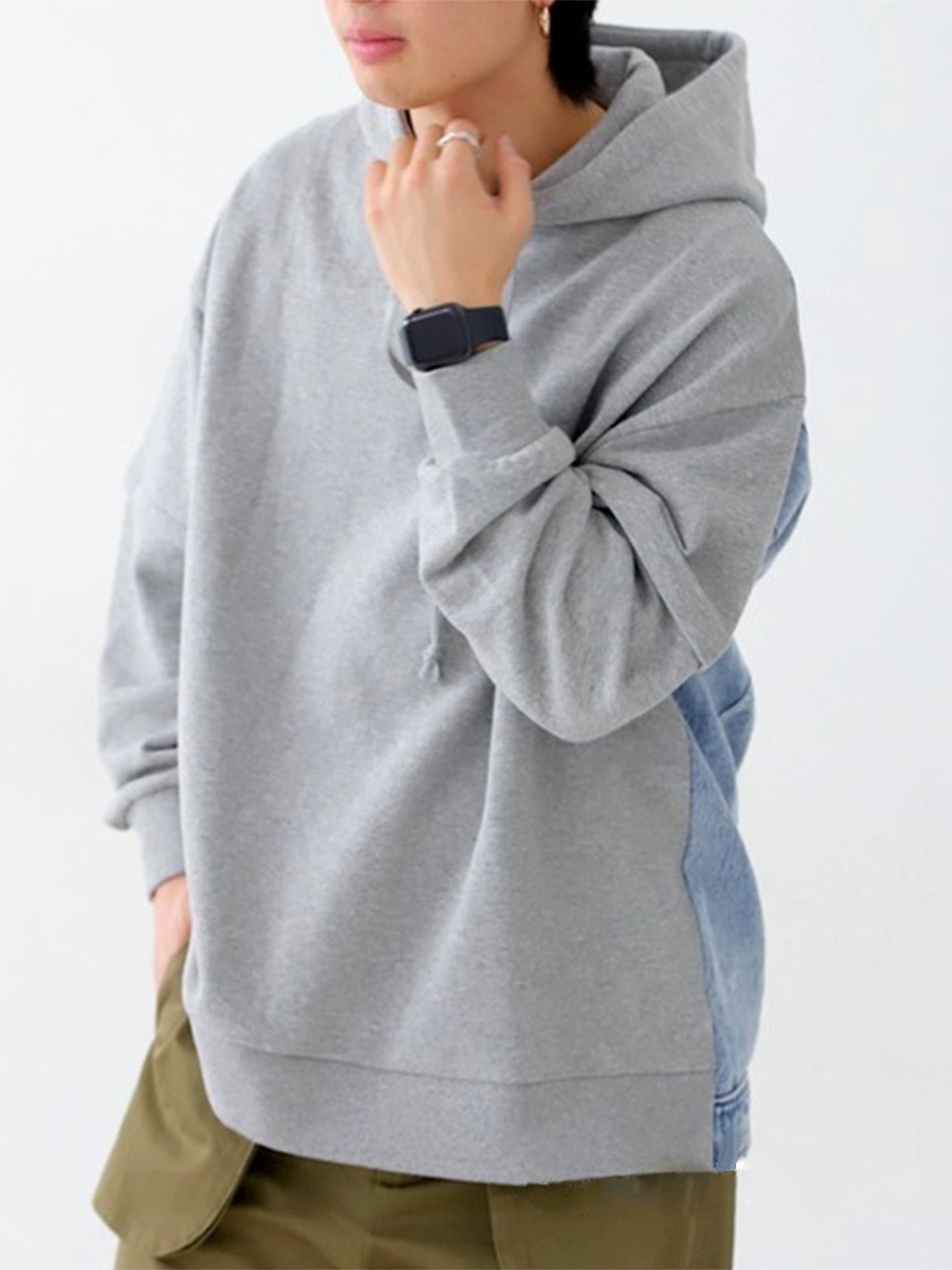 デニム切替パーカー|ルーズデザインフーディー(HU110)