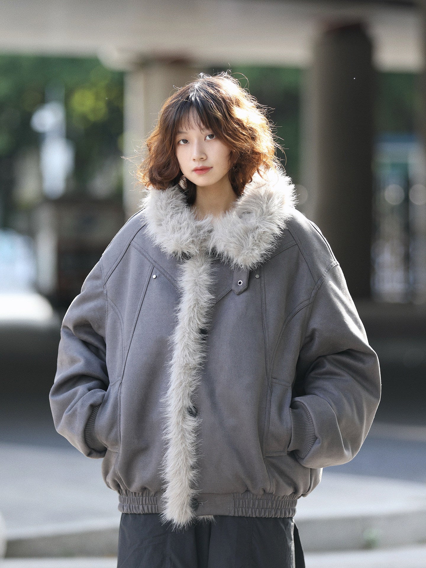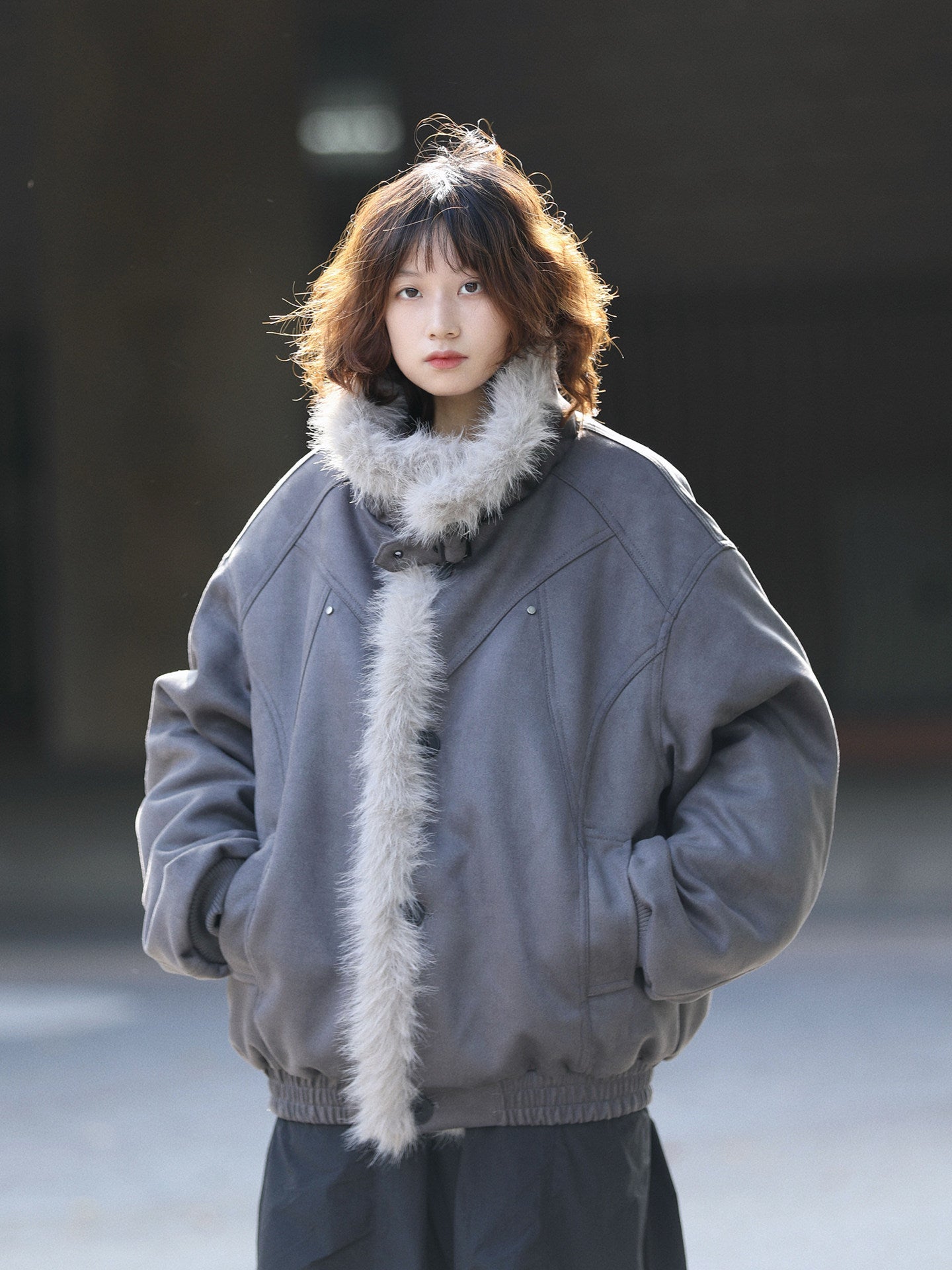 存在感のあるフェイクムートン×ふわモコ裏ボアで真冬も余裕の暖かさ。ミリタリー寄りの無骨さと可愛さの両立。ゆったりシルエットで男女共に着こなせる万能アウター。