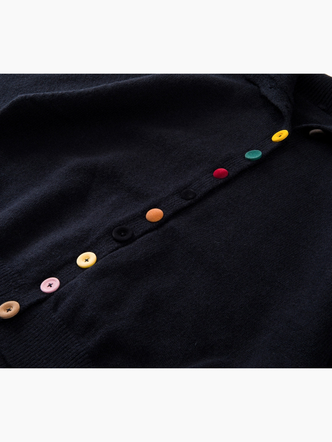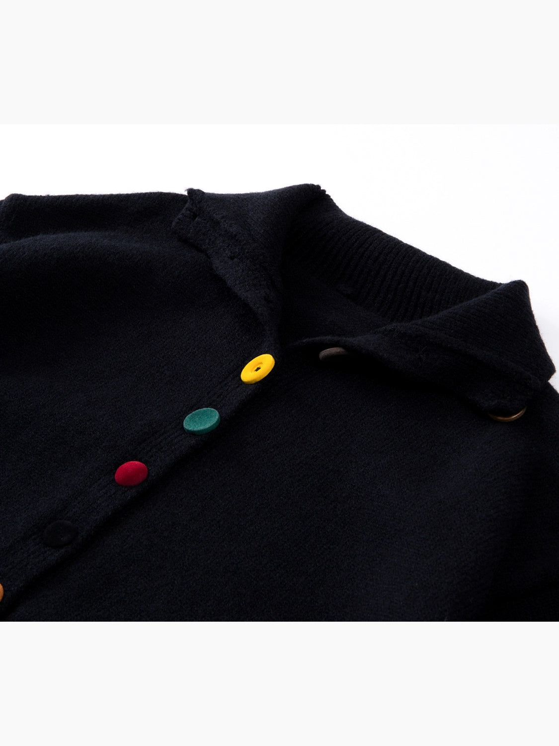 上品なハイネックデザインに、マルチカラーボタンが遊び心を添える秋冬新作ニットカーディガン。シンプルなブラックベースにピンク・ブラウン・イエローのボタンをあしらい、抜け感と個性を両立。程よい厚みで暖かく、インナーにも羽織りにも使える万能アイテムです。柔らかい肌触りで着心地も快適。