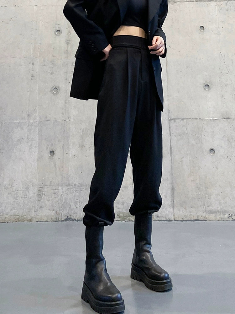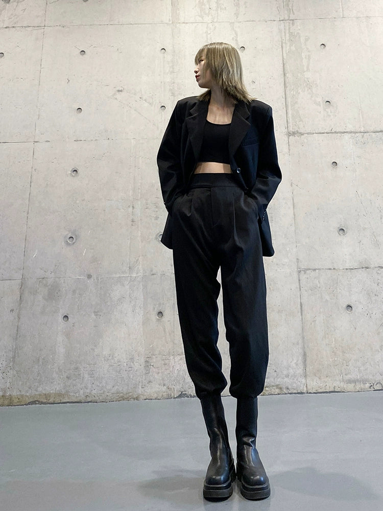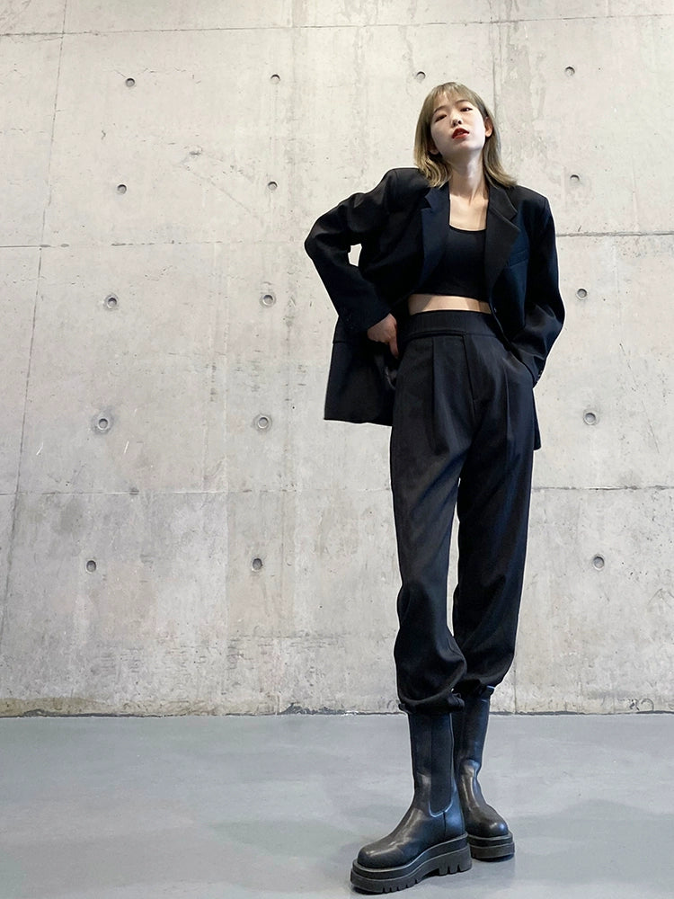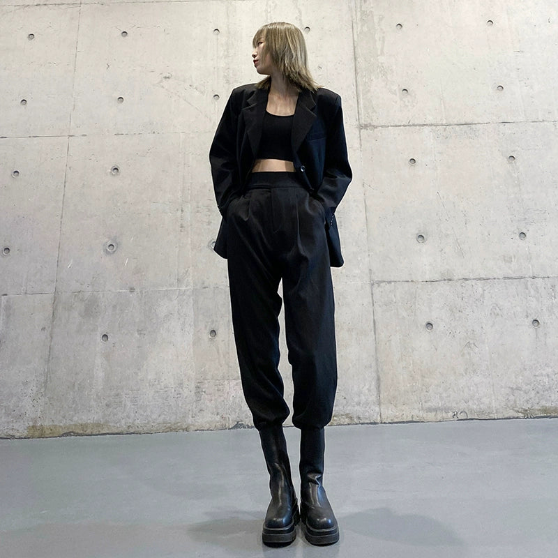 スーツパンツ風 黒 ワイドジョガー(HU297)