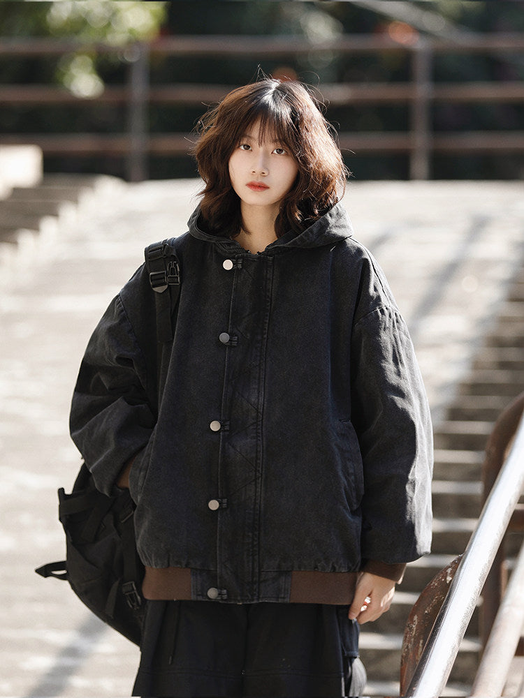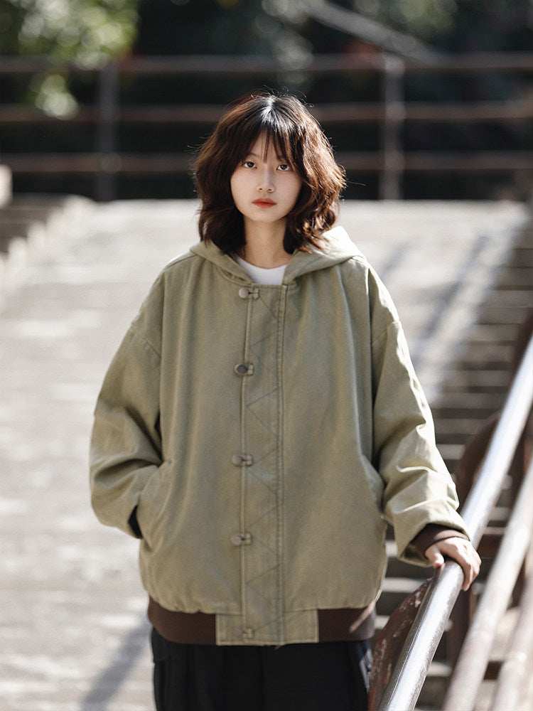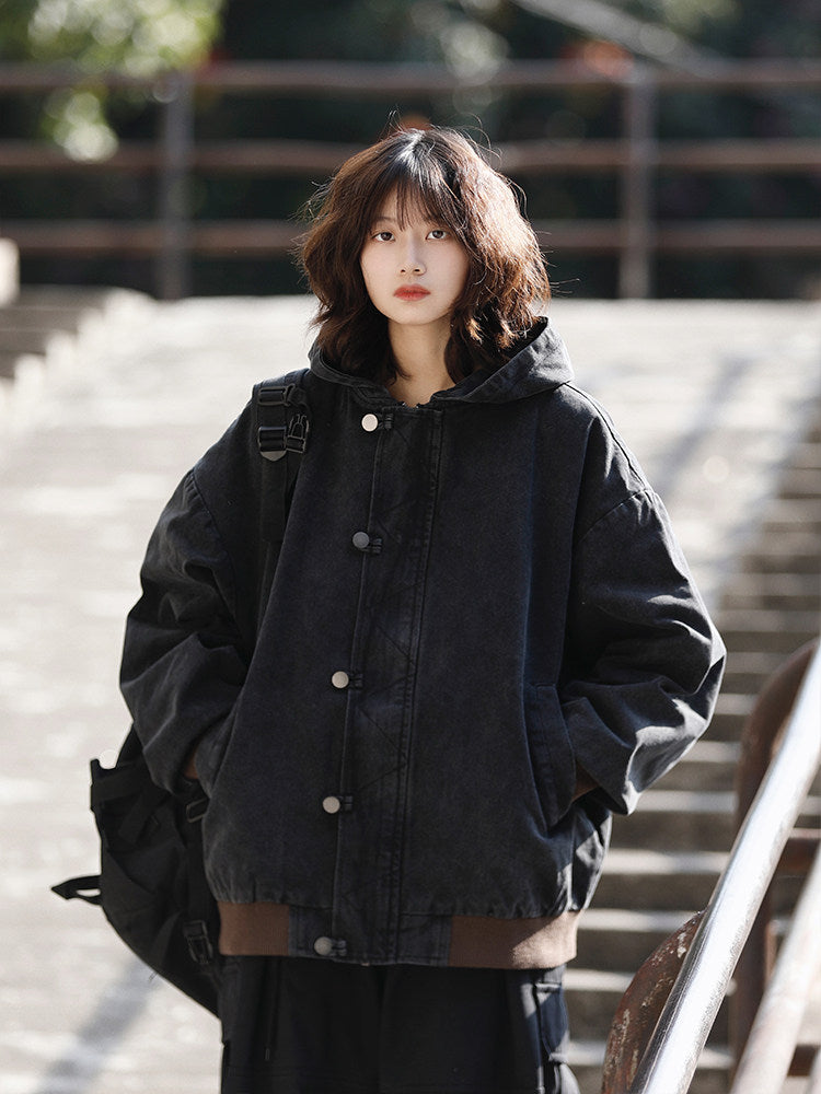美式ヴィンテージ・ウォッシュ加工フードジャケット(HU929)