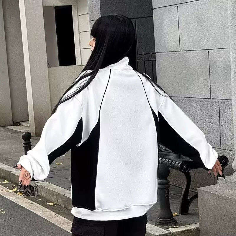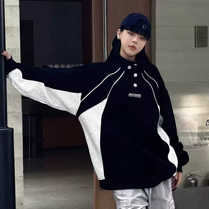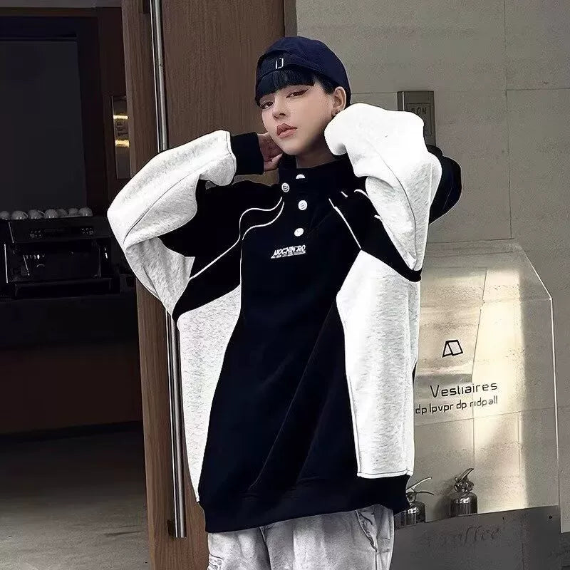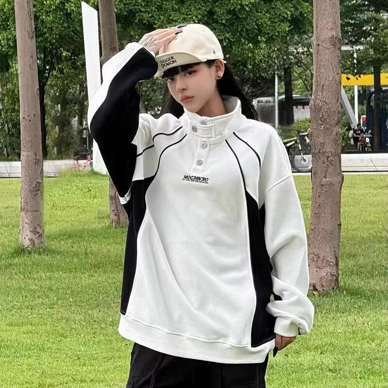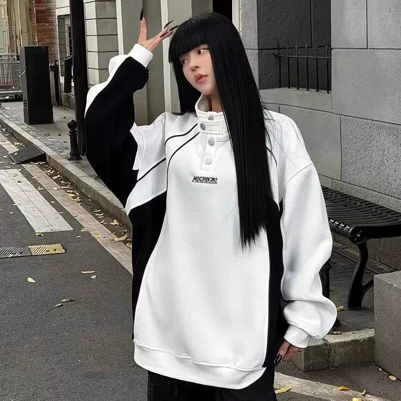 ストリート感のある切替デザインが目を引く、2025春秋新作の立ち襟スウェット。やや厚手のしっかりとした生地感で、ゆったりとしたシルエットが特徴。男女兼用のオーバーサイズ設計で、トレンドの韓国ストリート×カレッジ風スタイルを演出。どんなボトムスにも合わせやすく、カジュアルなデイリーウェアに最適な1枚です。