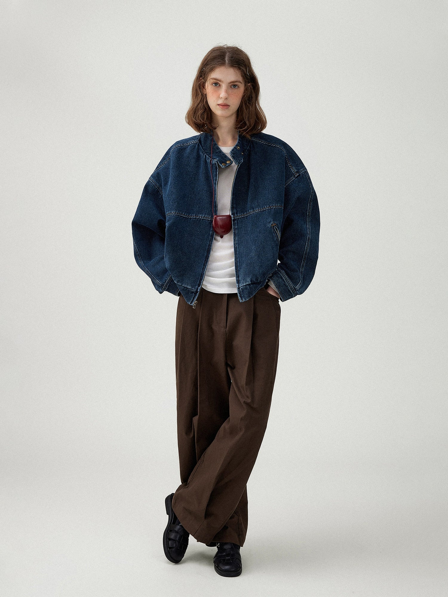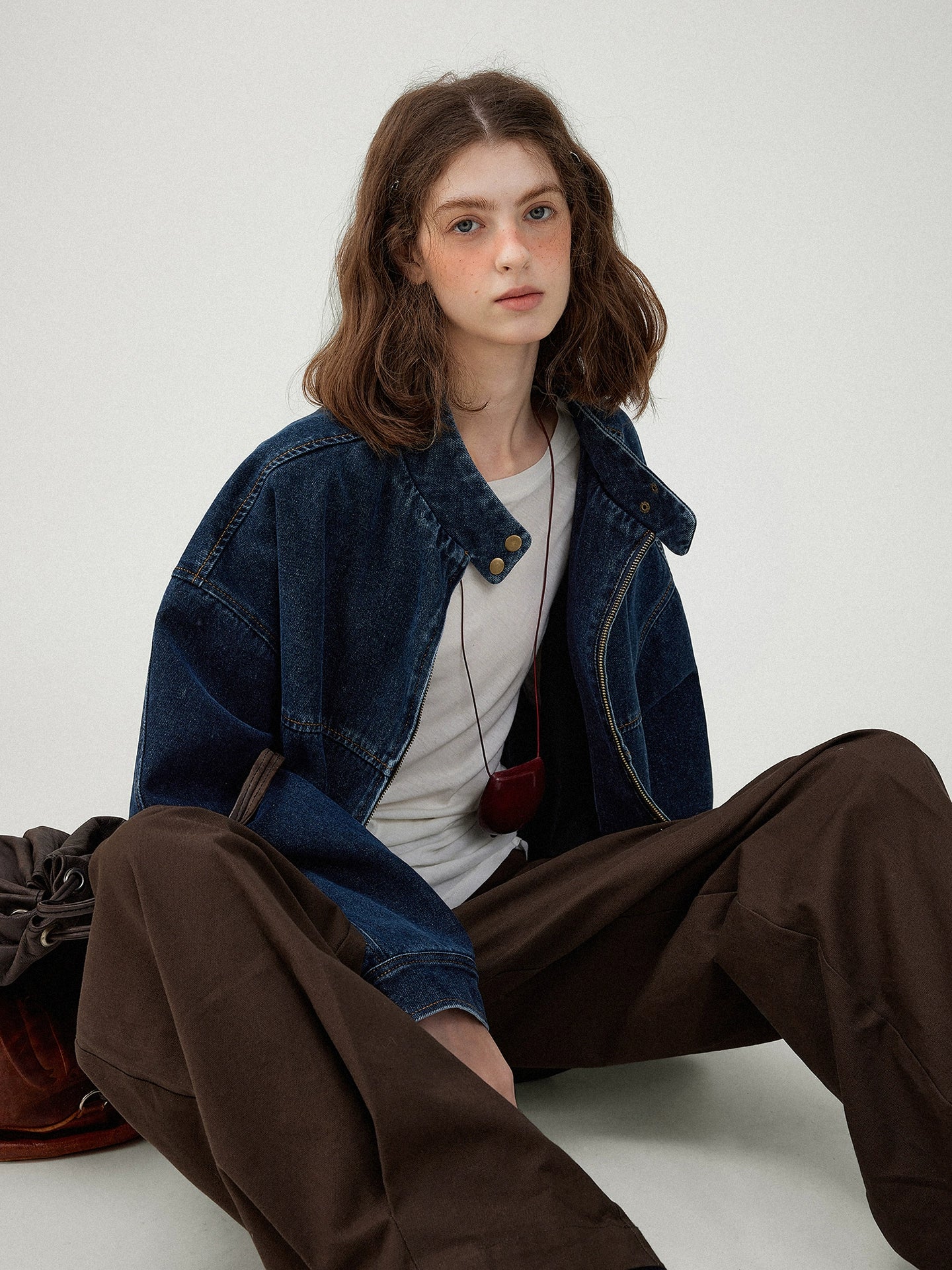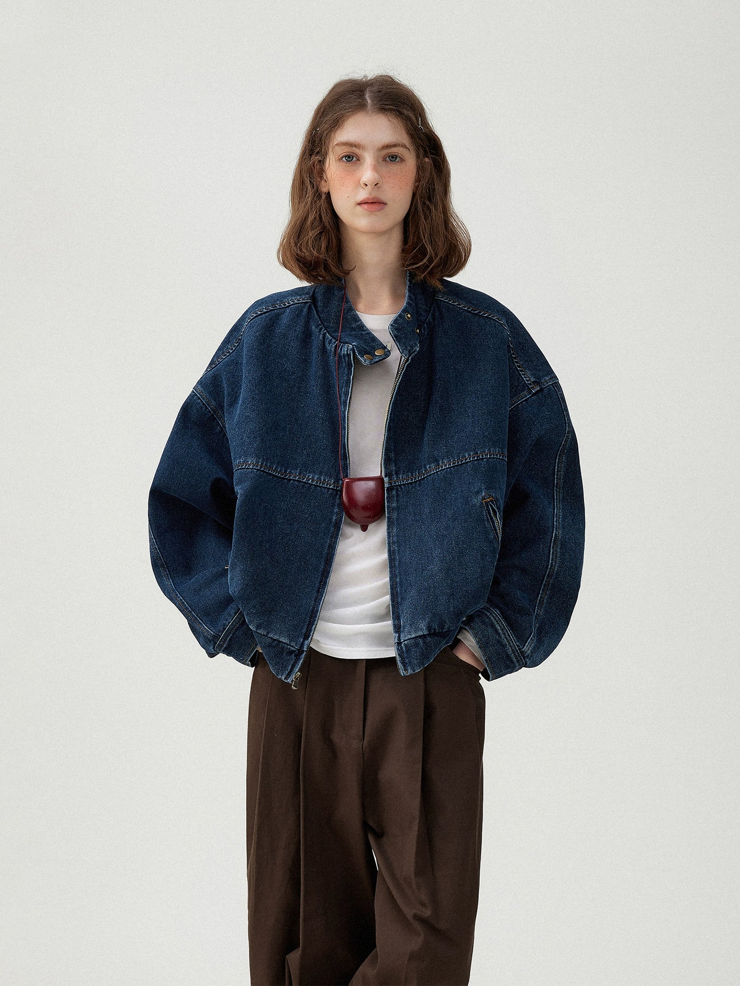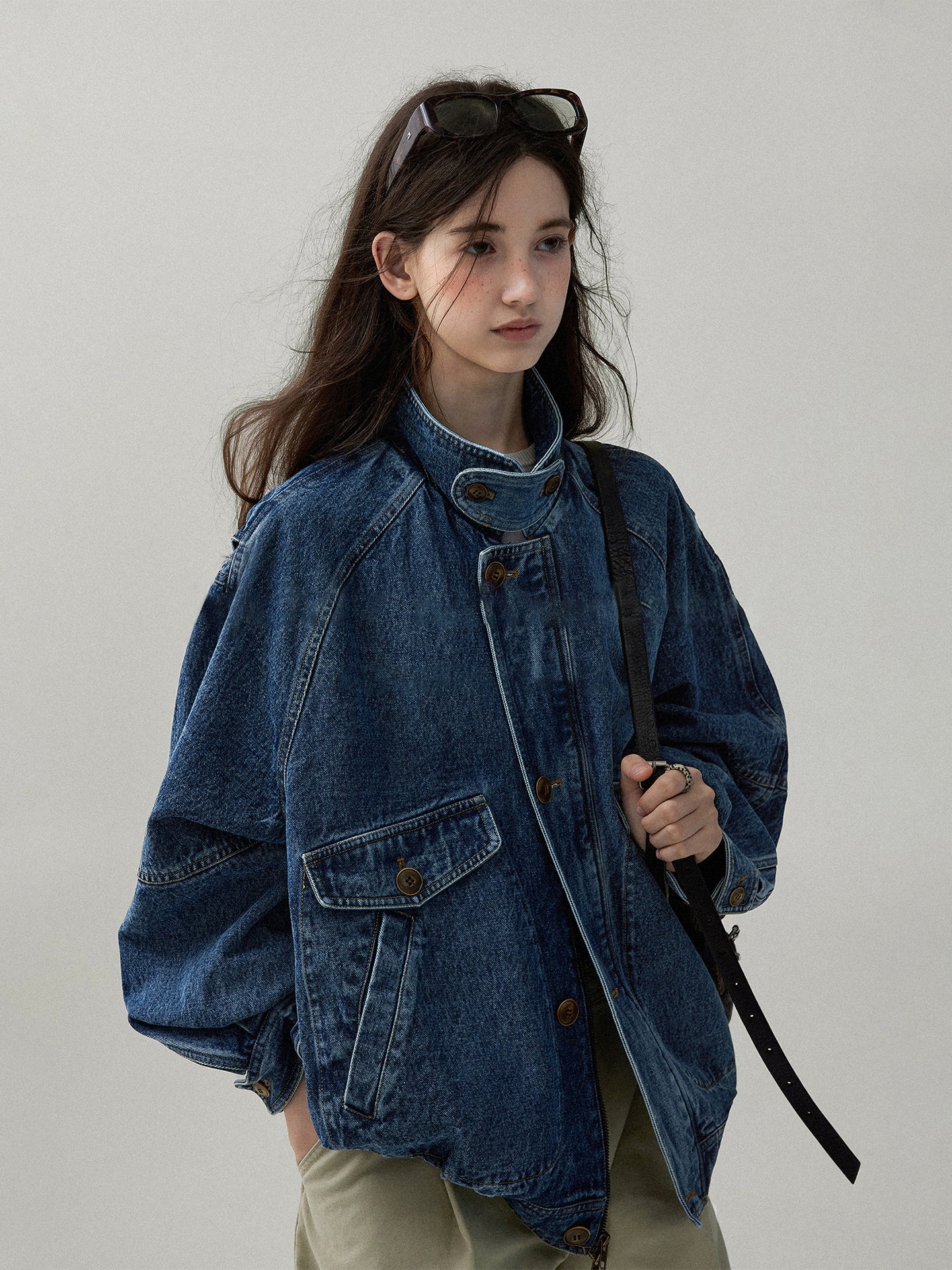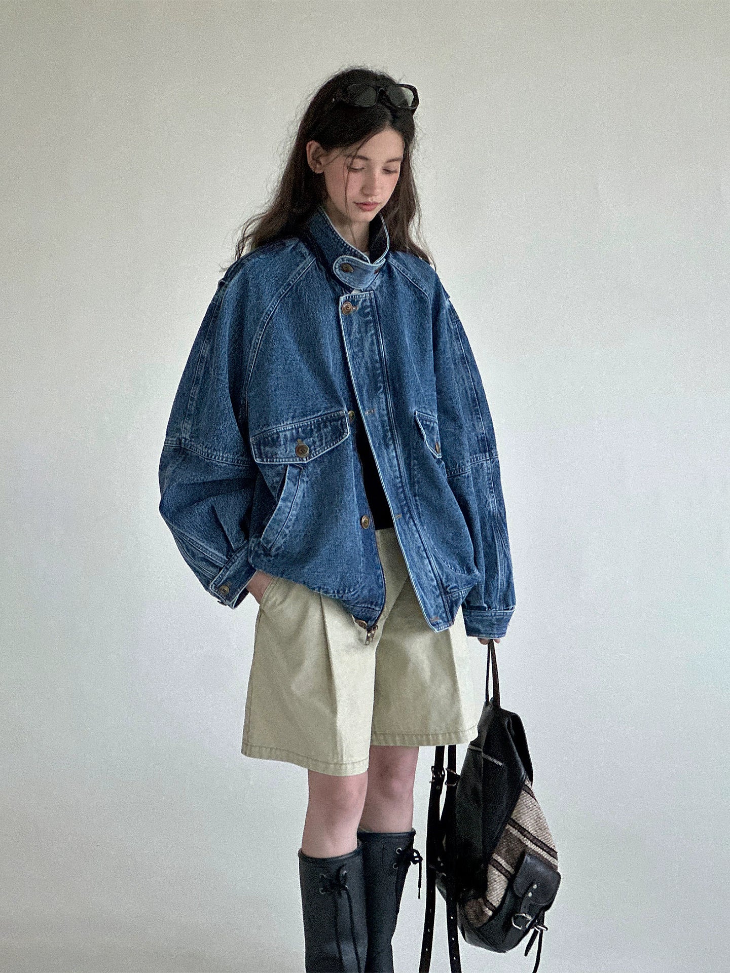 北欧中古風のナチュラルな色落ちと立ち襟デザインが印象的な秋新作デニムジャケット。ゆるやかなラグランスリーブとワイドな肩幅でこなれ感たっぷりの廓形(オーバー)シルエットを実現。軽く羽織るだけで抜け感あるトレンドスタイルを演出します。厚みのあるコットンデニム素材で、季節の変わり目にも最適。